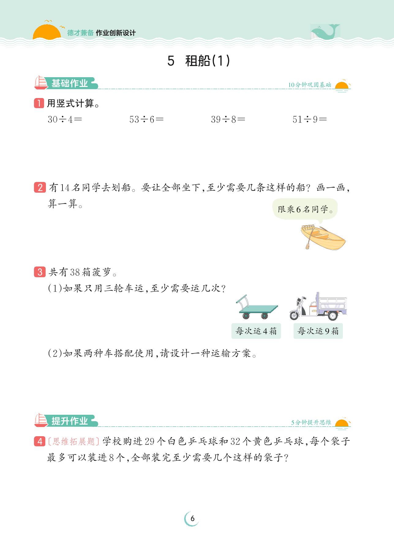 2023下册二年级数学北师版 第一单元 除法——5 租船(1)