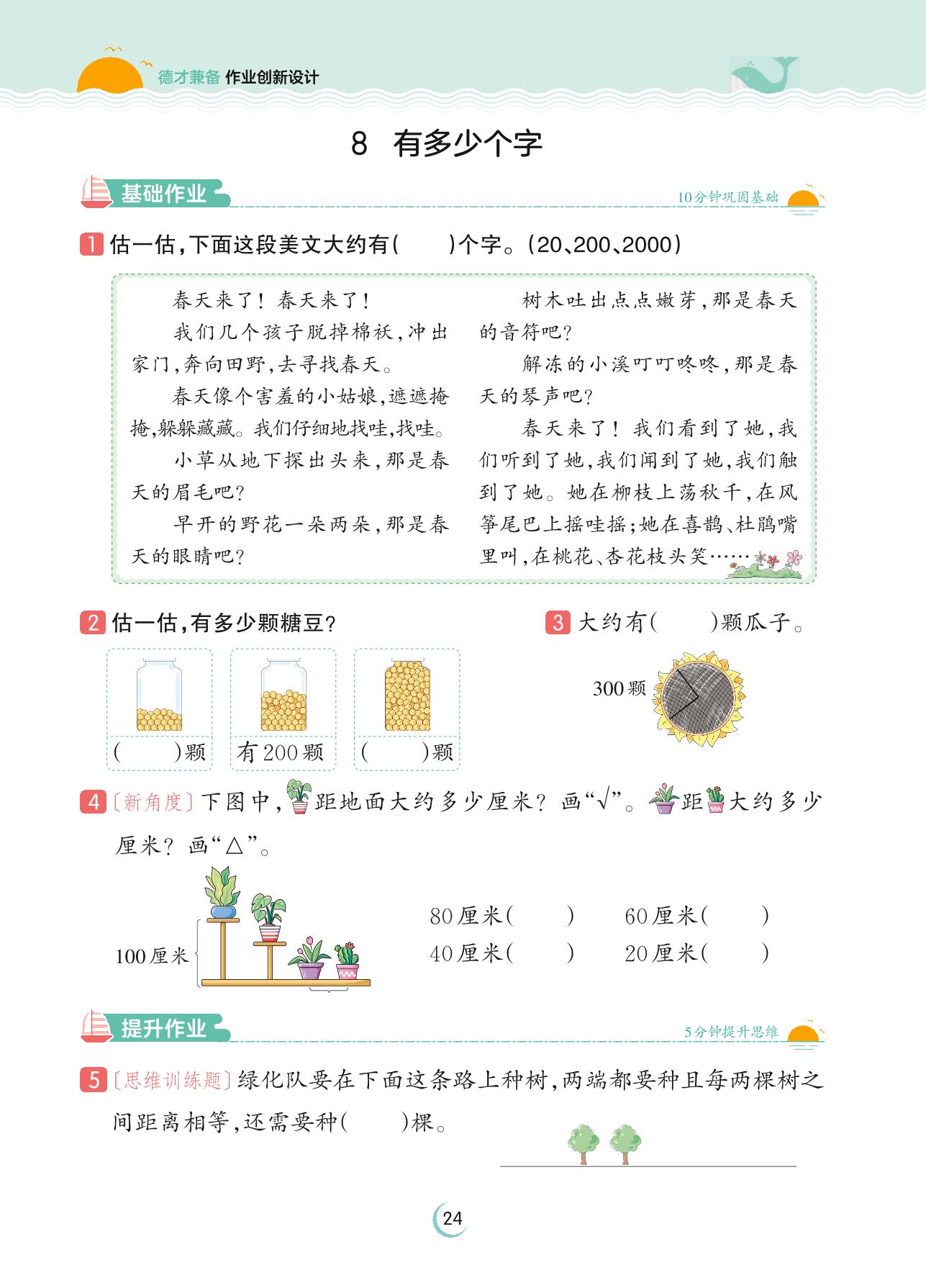 2023下册二年级数学北师版 第三单元 生活中的大数——8 有多少个字