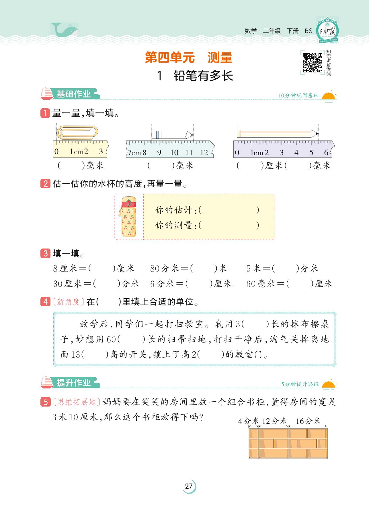 2023下册二年级数学北师版 第四单元 测量——1 铅笔有多长