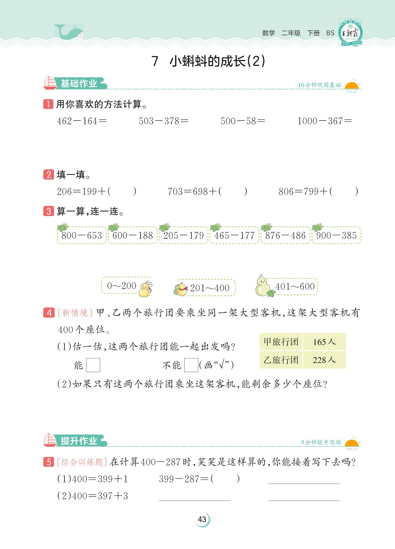 2023下册二年级数学北师版 第五单元 加与减——7 小蝌蚪的成长(2)