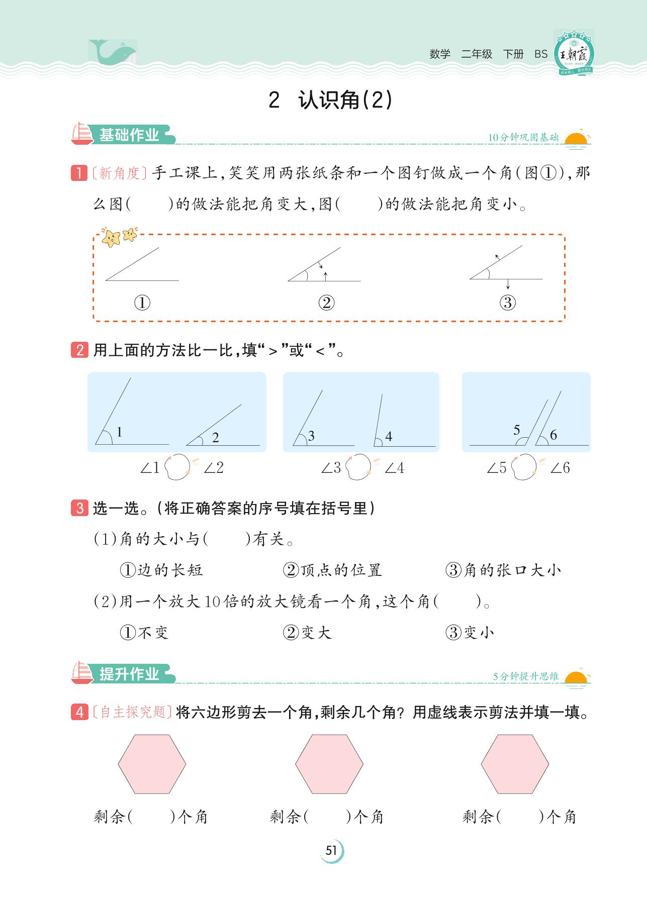 2023下册二年级数学北师版 第六单元 认识图形——2 认识角(2)