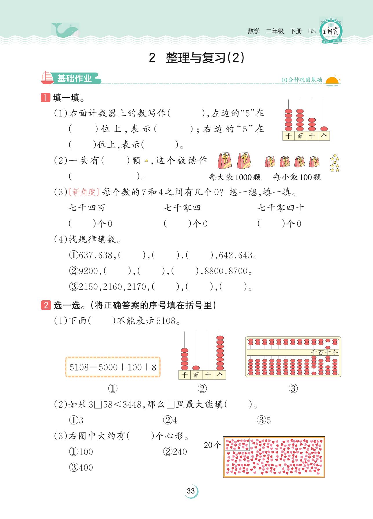 2023下册二年级数学北师版 整理与复习——2 整理与复习(2)