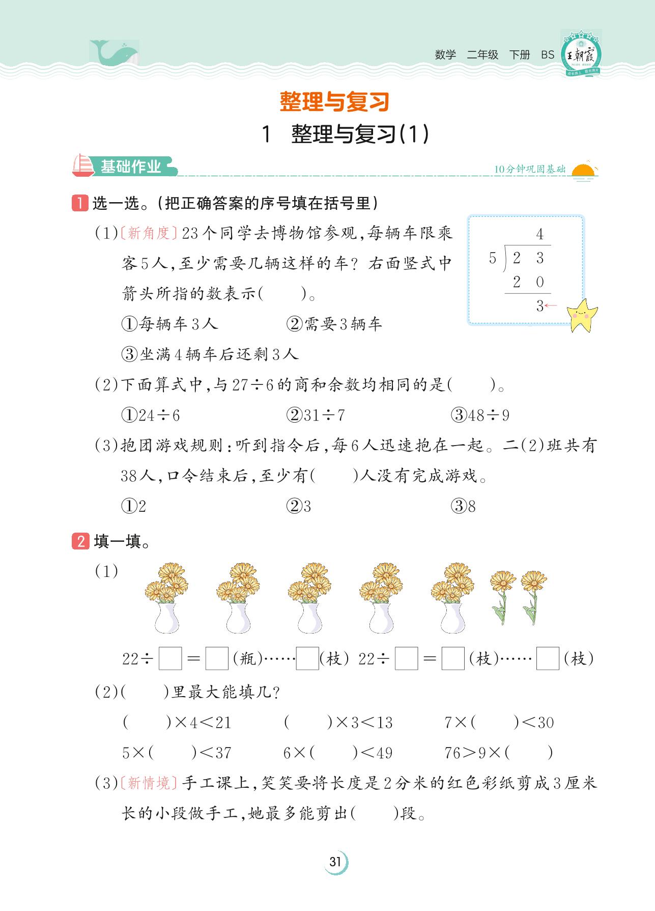2023下册二年级数学北师版 整理与复习——1 整理与复习(1)