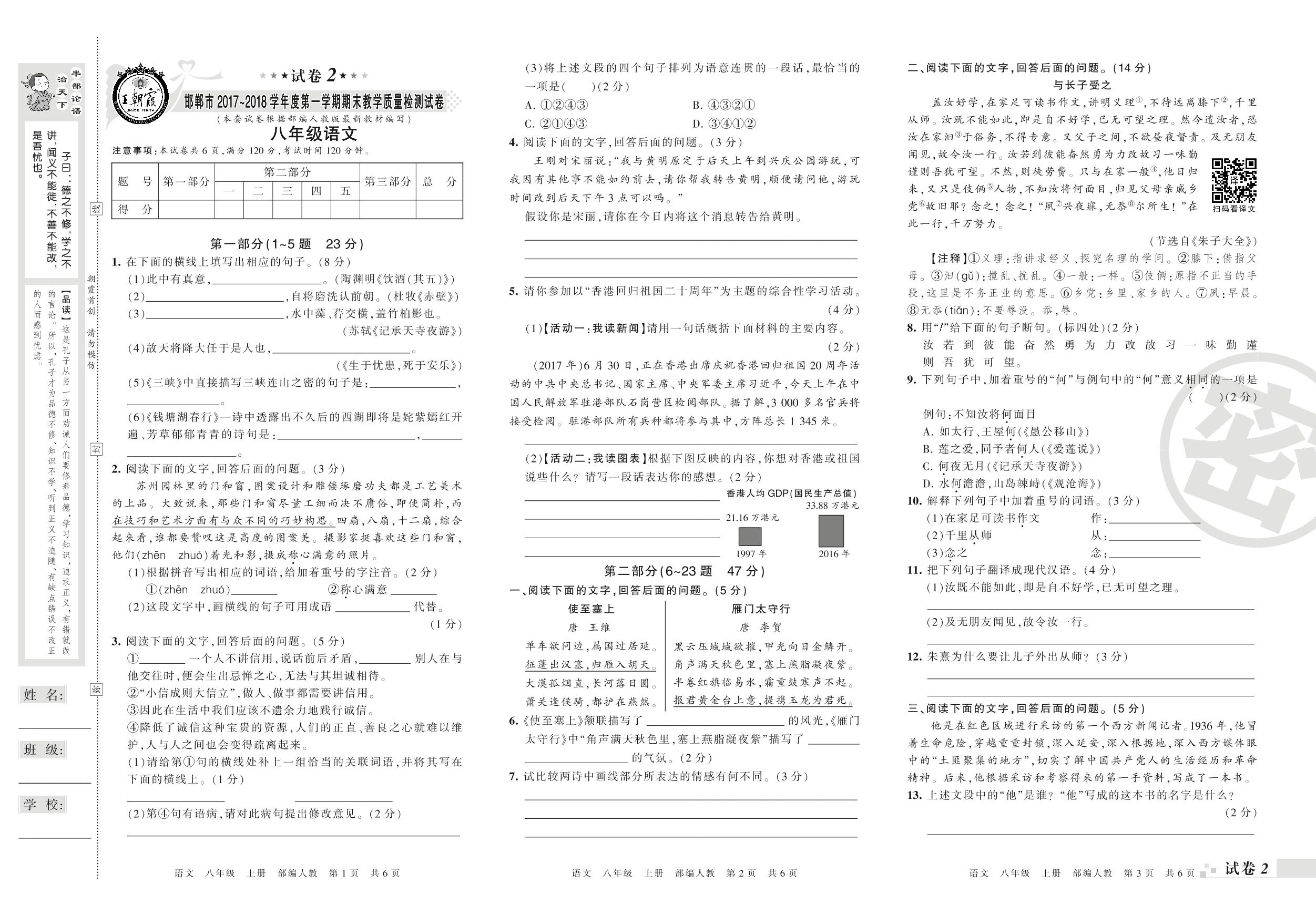 2017-2018学年第一学期邯郸市八年级语文试卷(人教版)【2】
