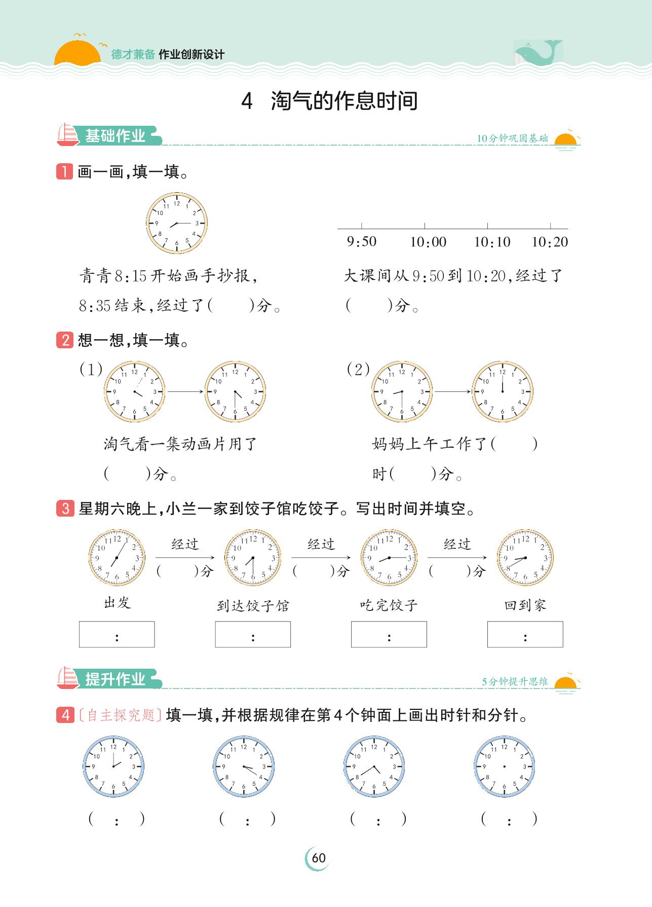 2023下册二年级数学北师版 第七单元 时、分、秒——4 淘气的作息时间