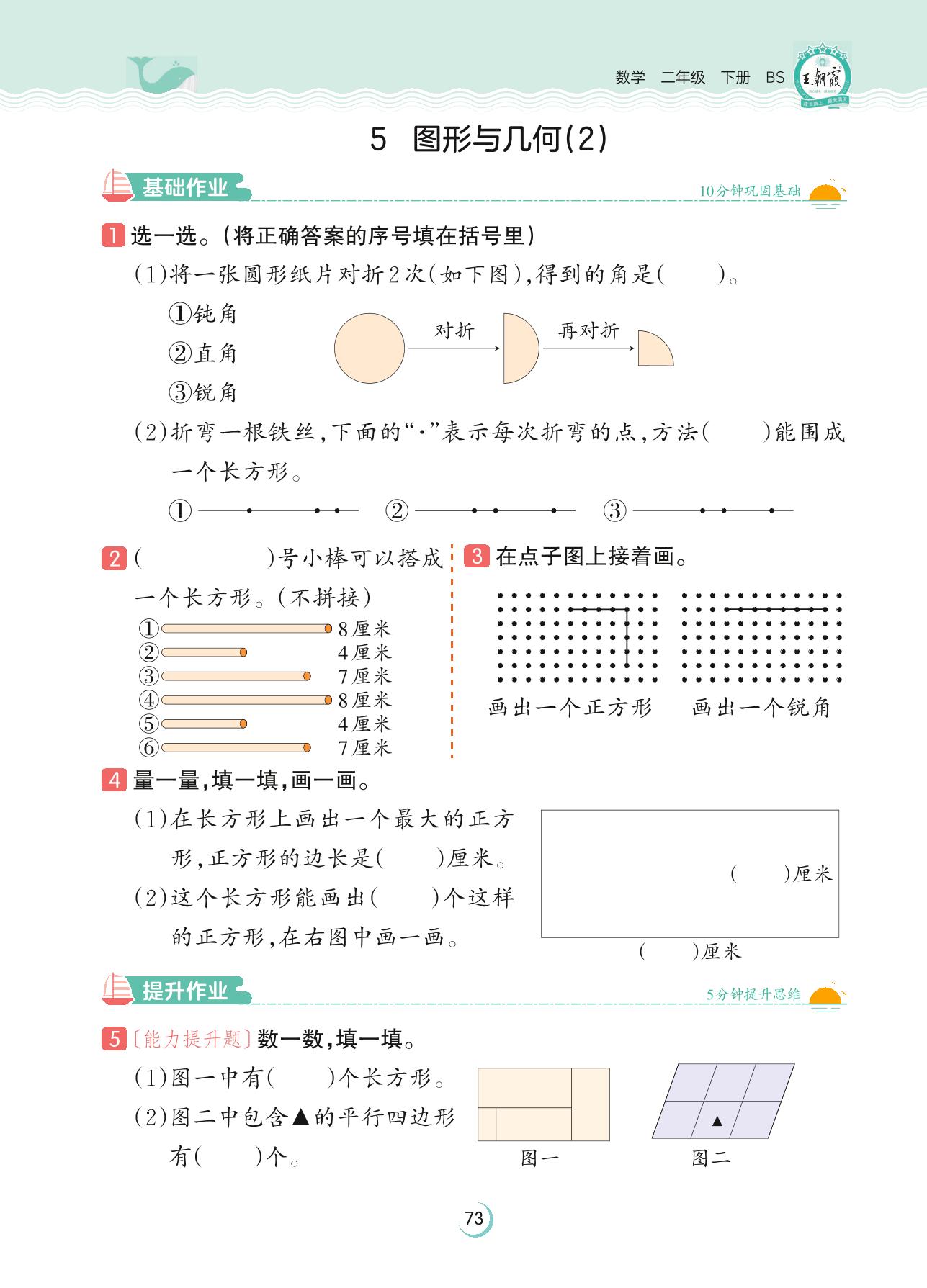 2023下册二年级数学北师版 总复习——5 图形与几何(2)