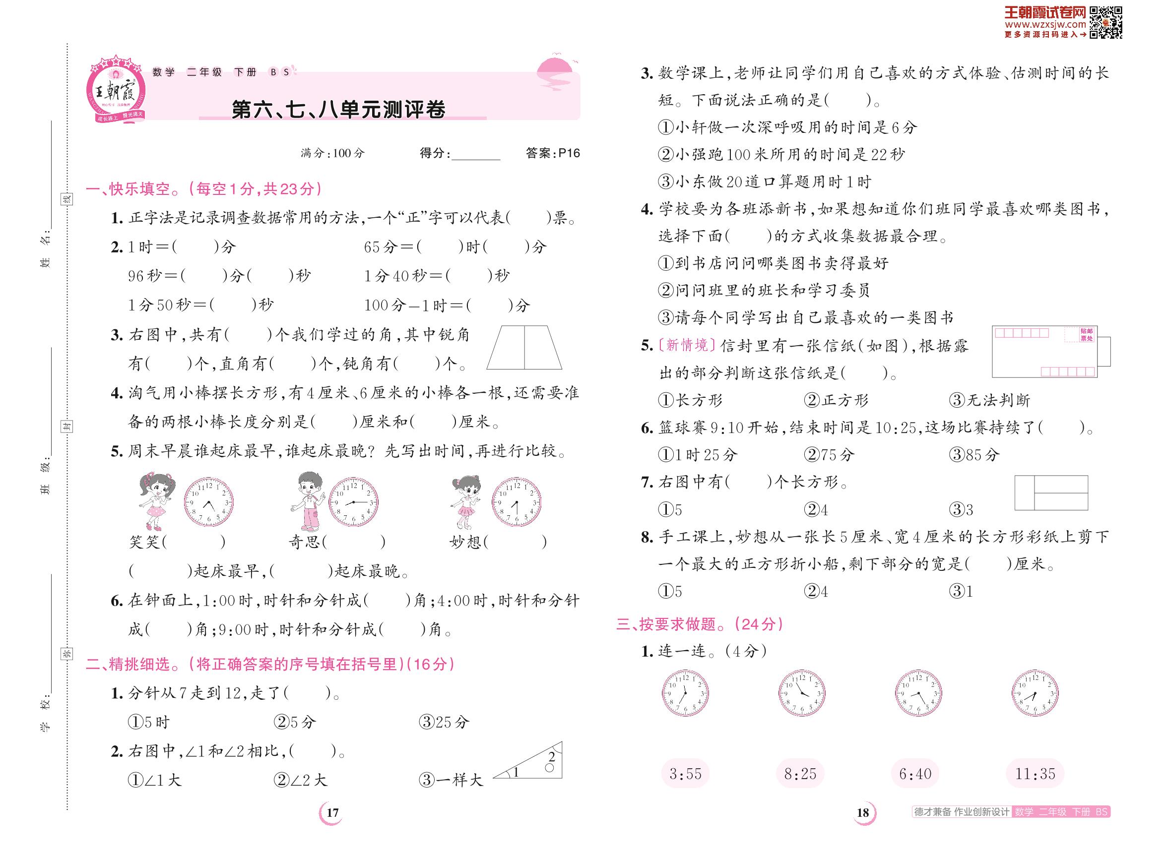 2023下册二年级数学北师版 第六、七、八单元测评卷