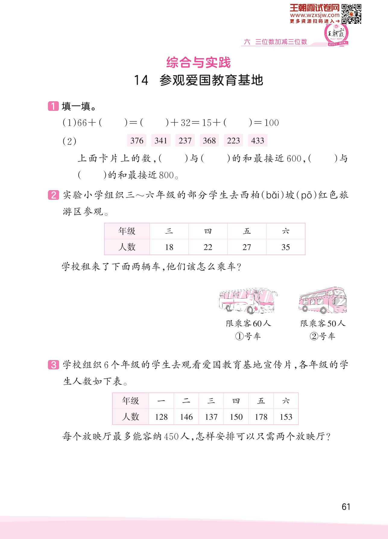 2023下册二年级数学冀教版 六 三位数加减三位数——14 参观爱国教育基地