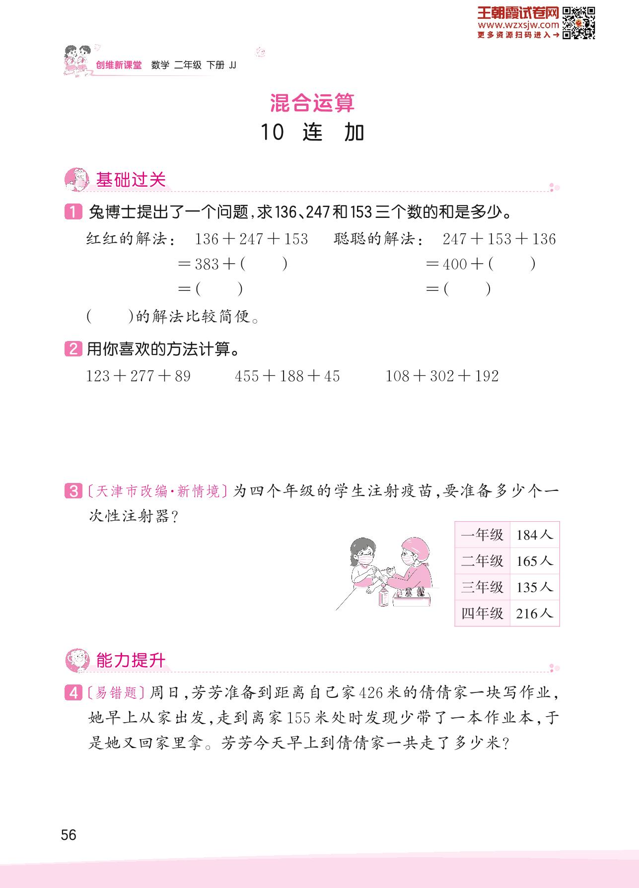 2023下册二年级数学冀教版 六 三位数加减三位数——10 连加