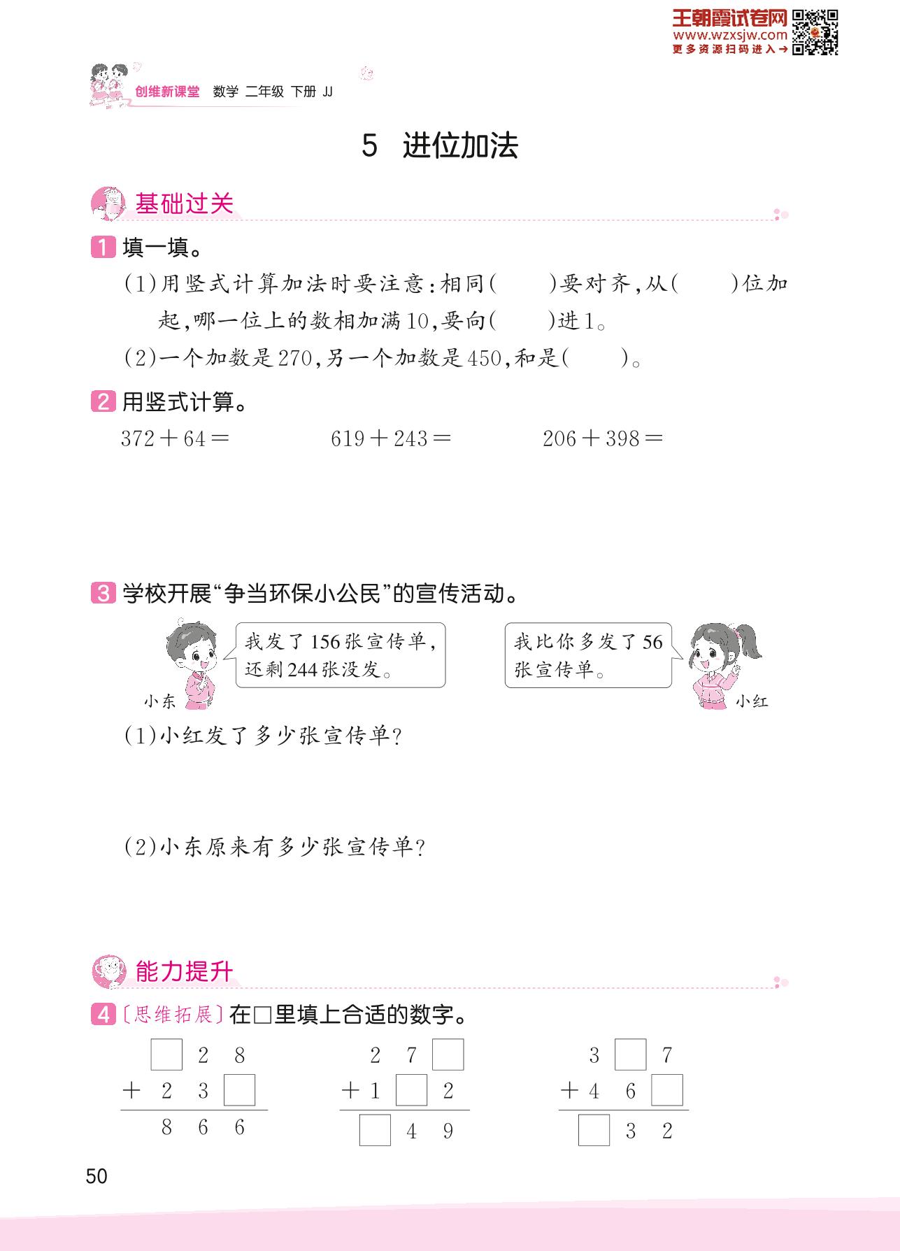 2023下册二年级数学冀教版 六 三位数加减三位数——5 进位加法