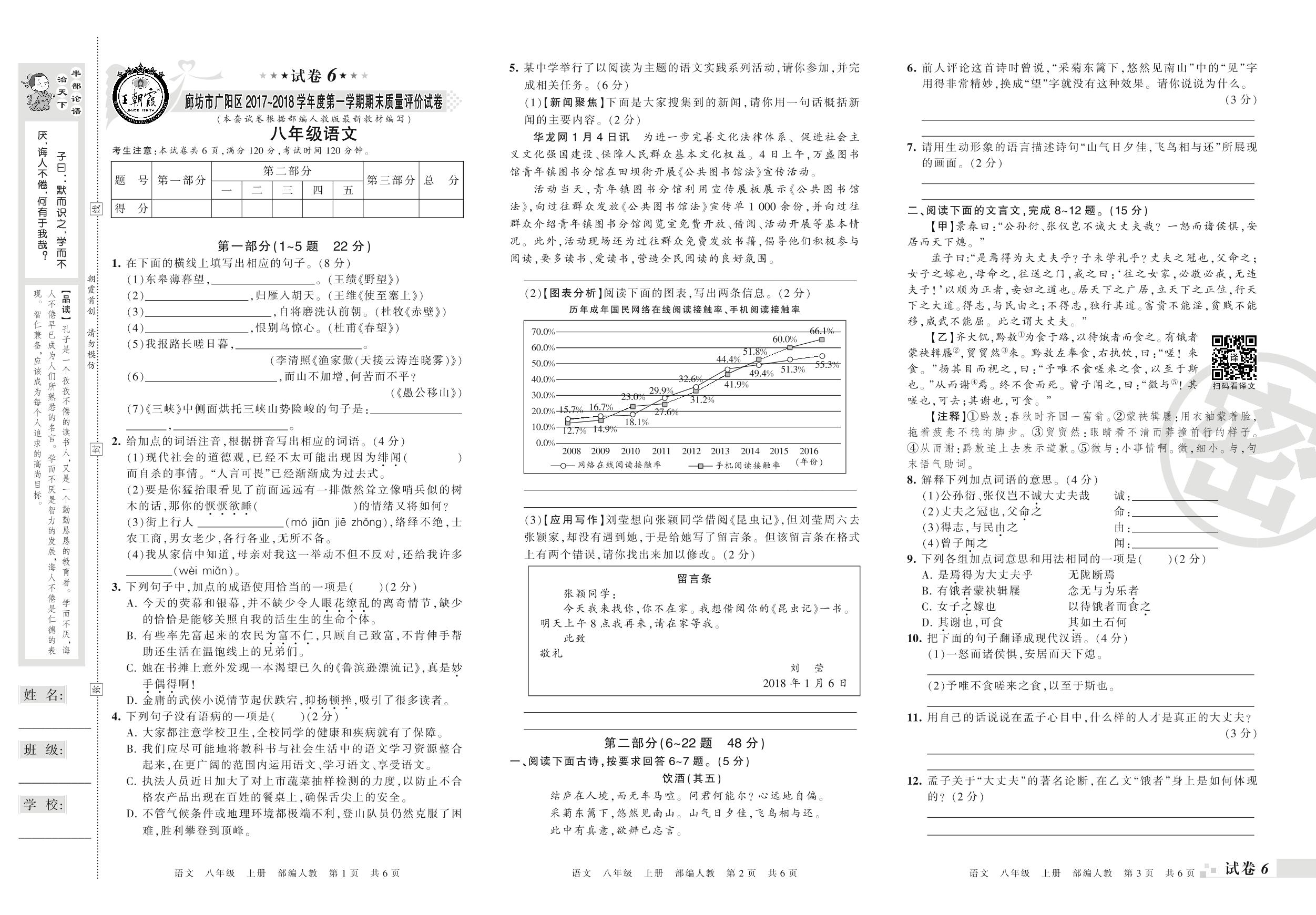 2017-2018学年第一学期廊坊市广阳区八年级语文试卷(人教版)【6】