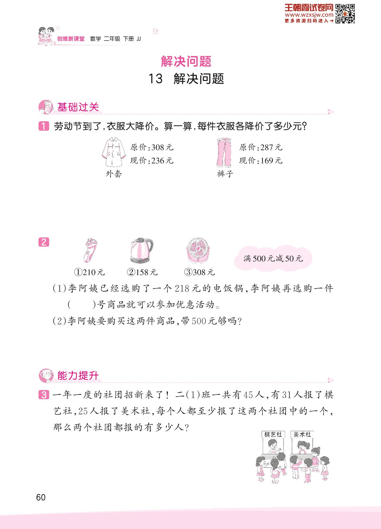 2023下册二年级数学冀教版 六 三位数加减三位数——13 解决问题