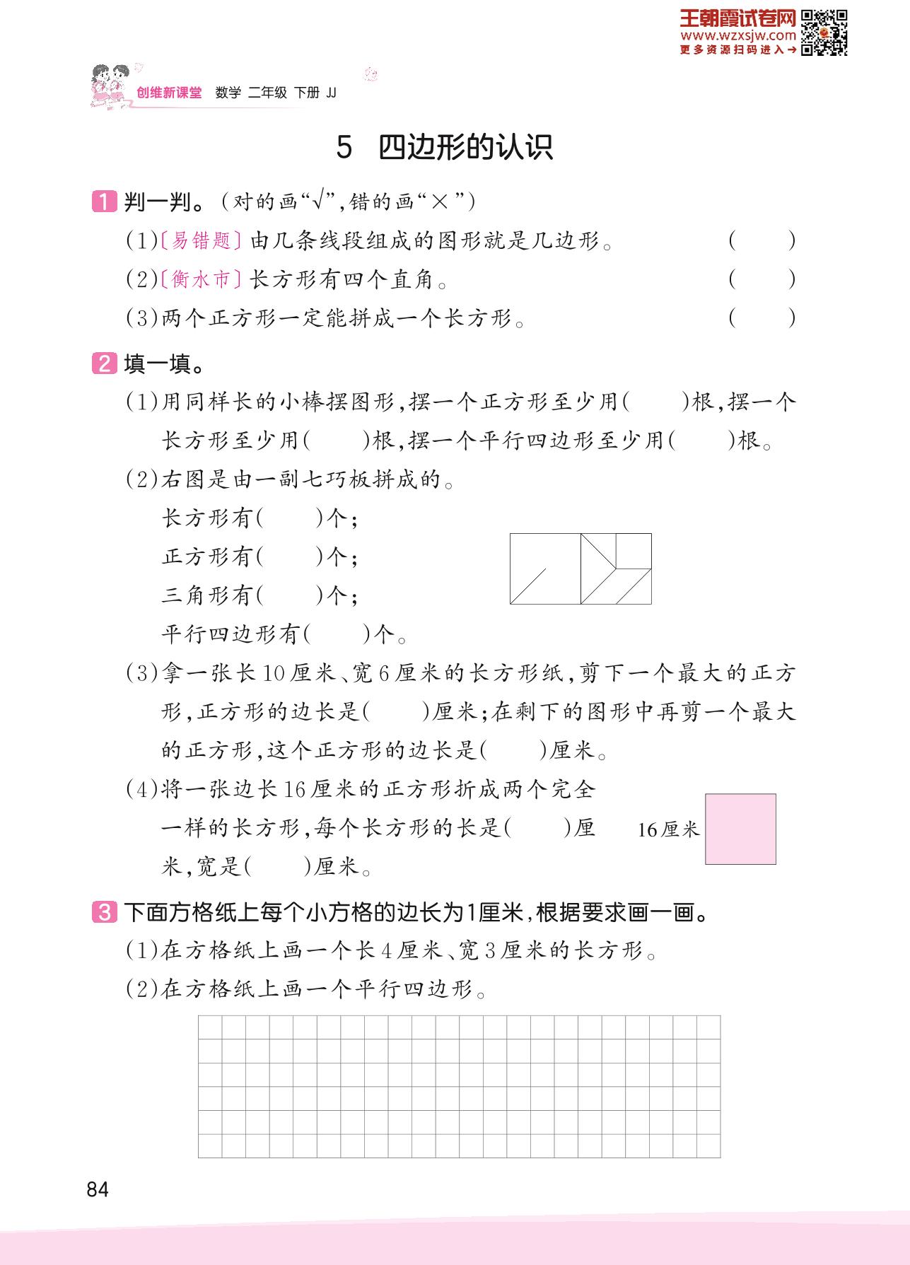 2023下册二年级数学冀教版 整理与评价——5 四边形的认识