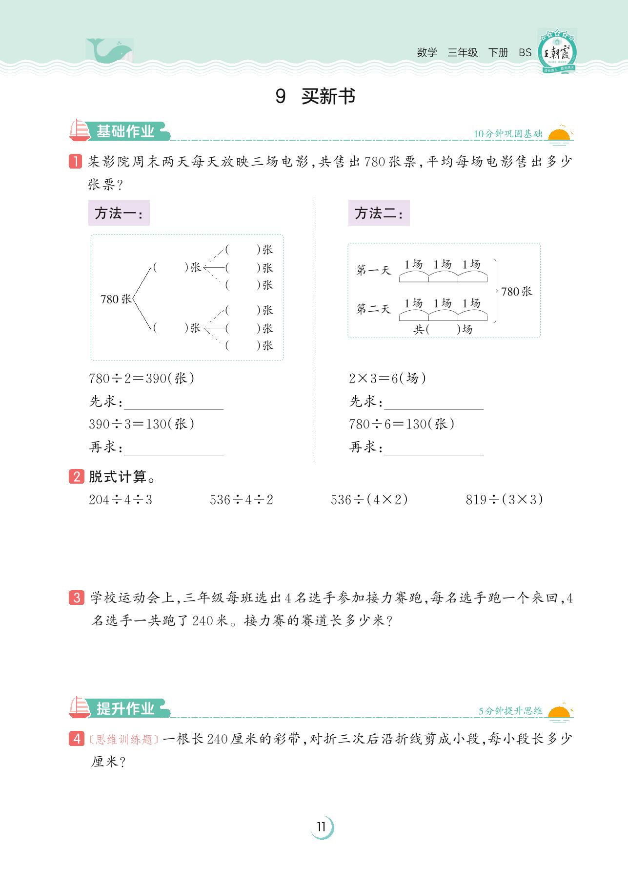 2023下册三年级数学北师版 第一单元 除法——9 买新书