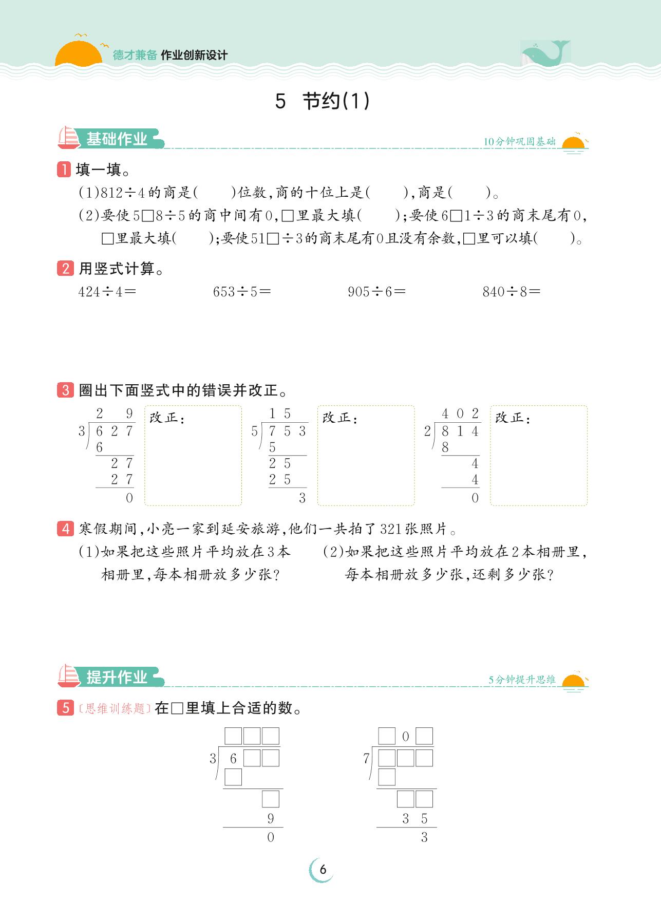 2023下册三年级数学北师版 第一单元 除法——5 节约(1)