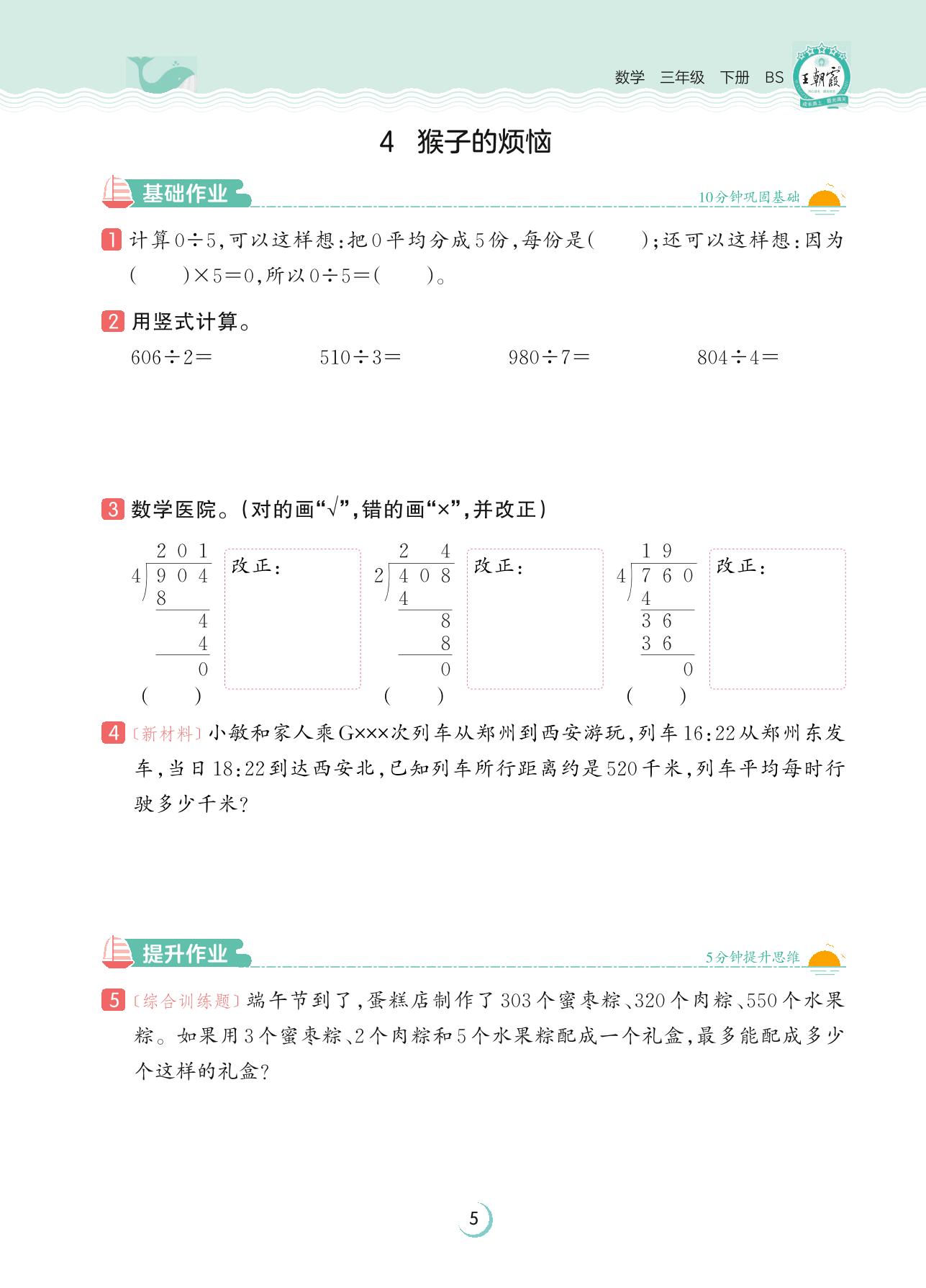 2023下册三年级数学北师版 第一单元 除法——4 猴子的烦恼
