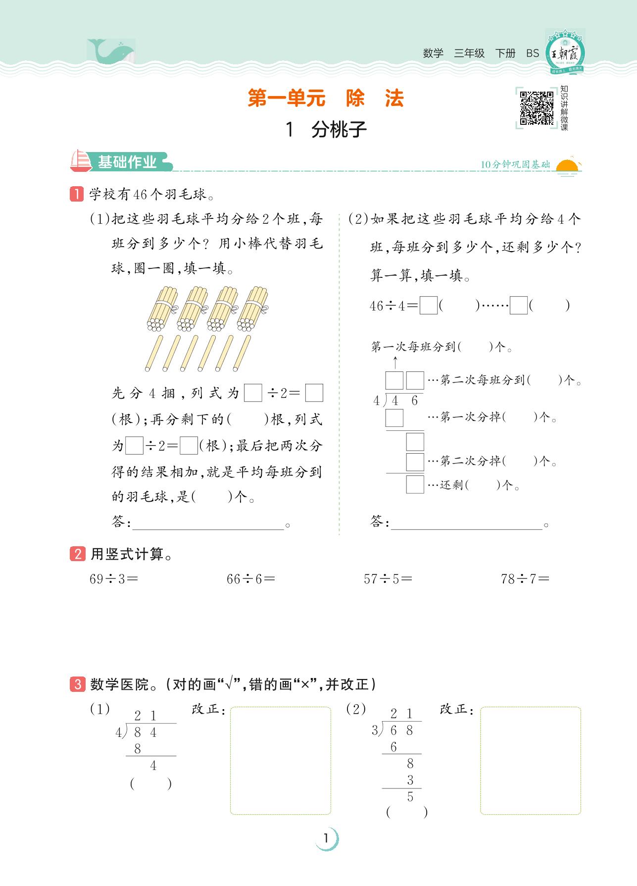 2023下册三年级数学北师版 第一单元 除法——1 分桃子