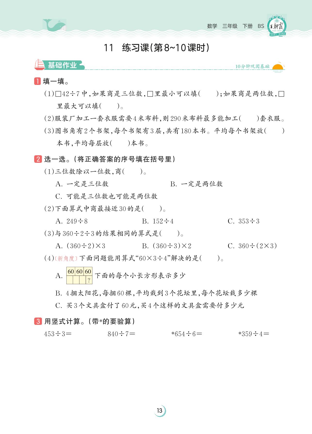 2023下册三年级数学北师版 第一单元 除法——11 练习课(第8~10课时)