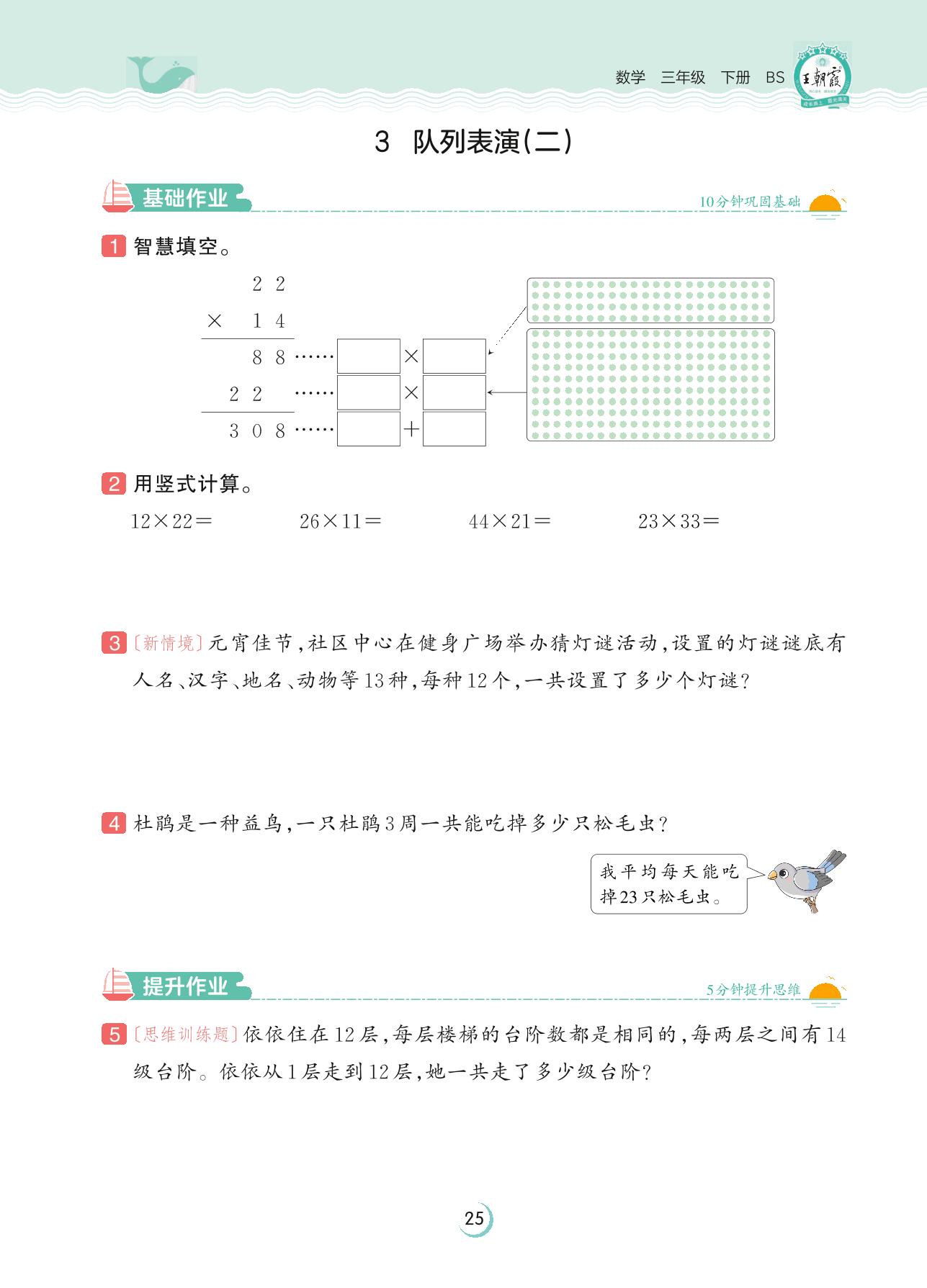 2023下册三年级数学北师版 第三单元 乘法——3 队列表演(二)