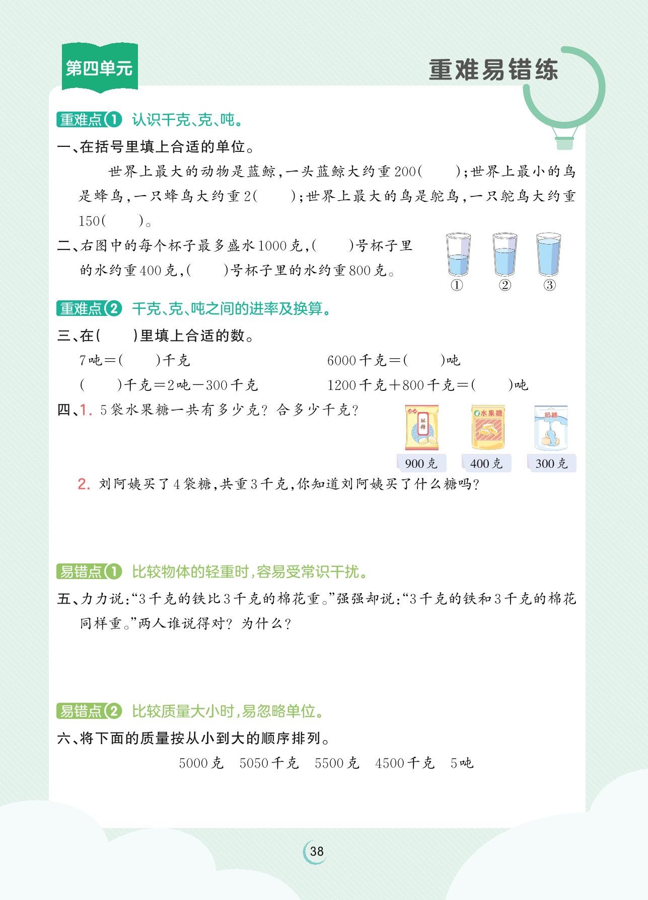三年级数学北师版下册专项卷
