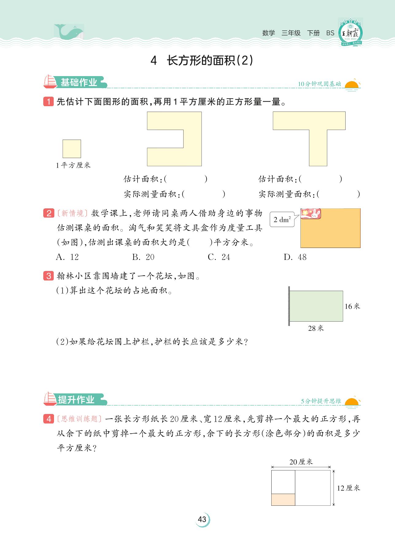 2023下册三年级数学北师版 第五单元 面积——4 长方形的面积(2)