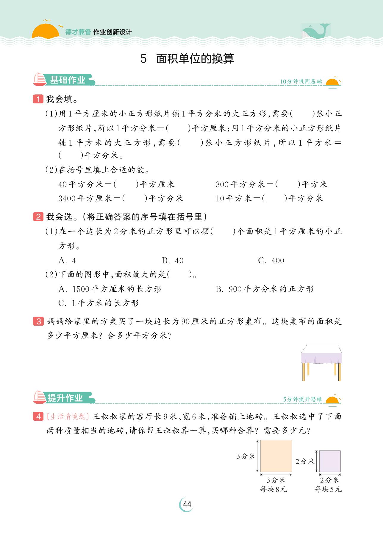 2023下册三年级数学北师版 第五单元 面积——5 面积单位的换算