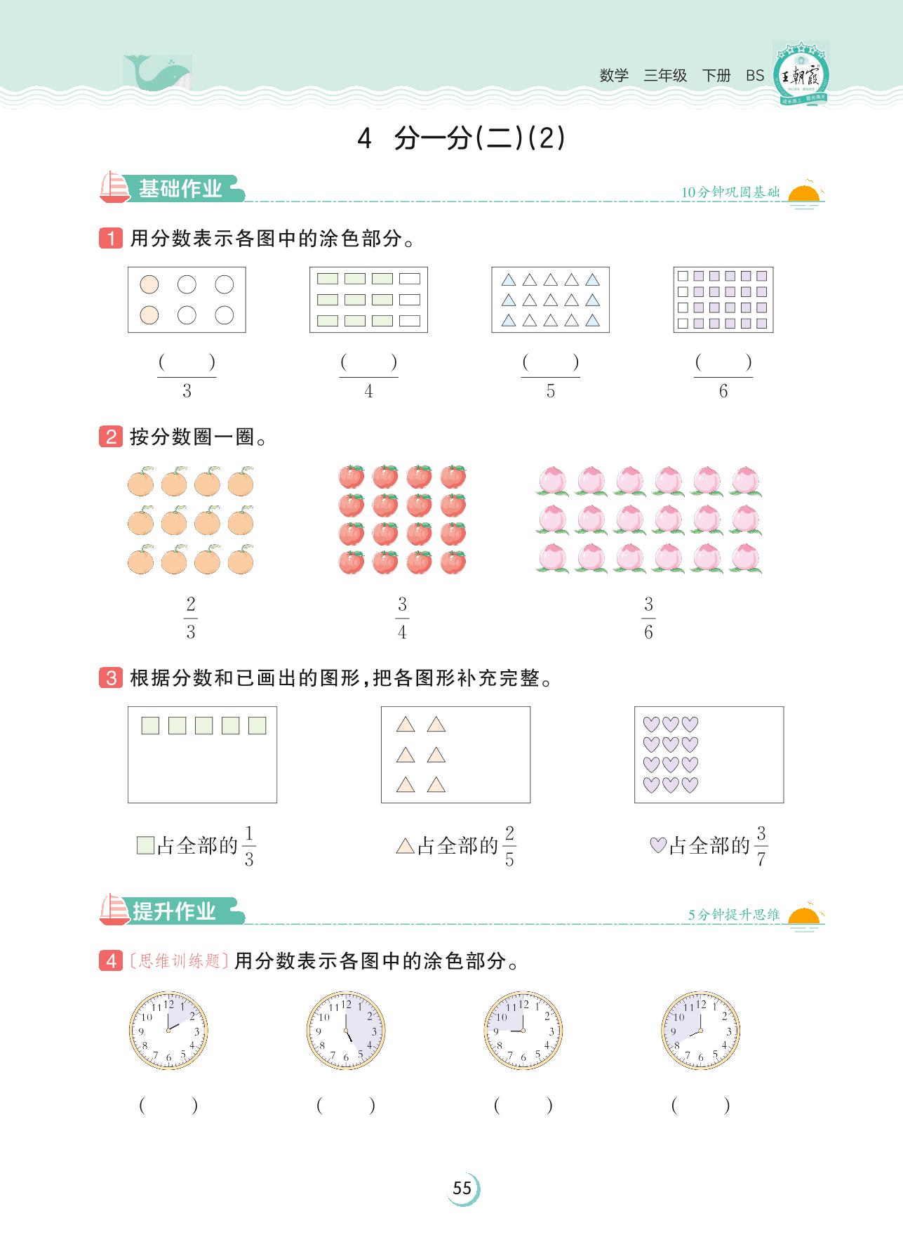 2023下册三年级数学北师版 第六单元 认识分数——4 分一分(二)(2)
