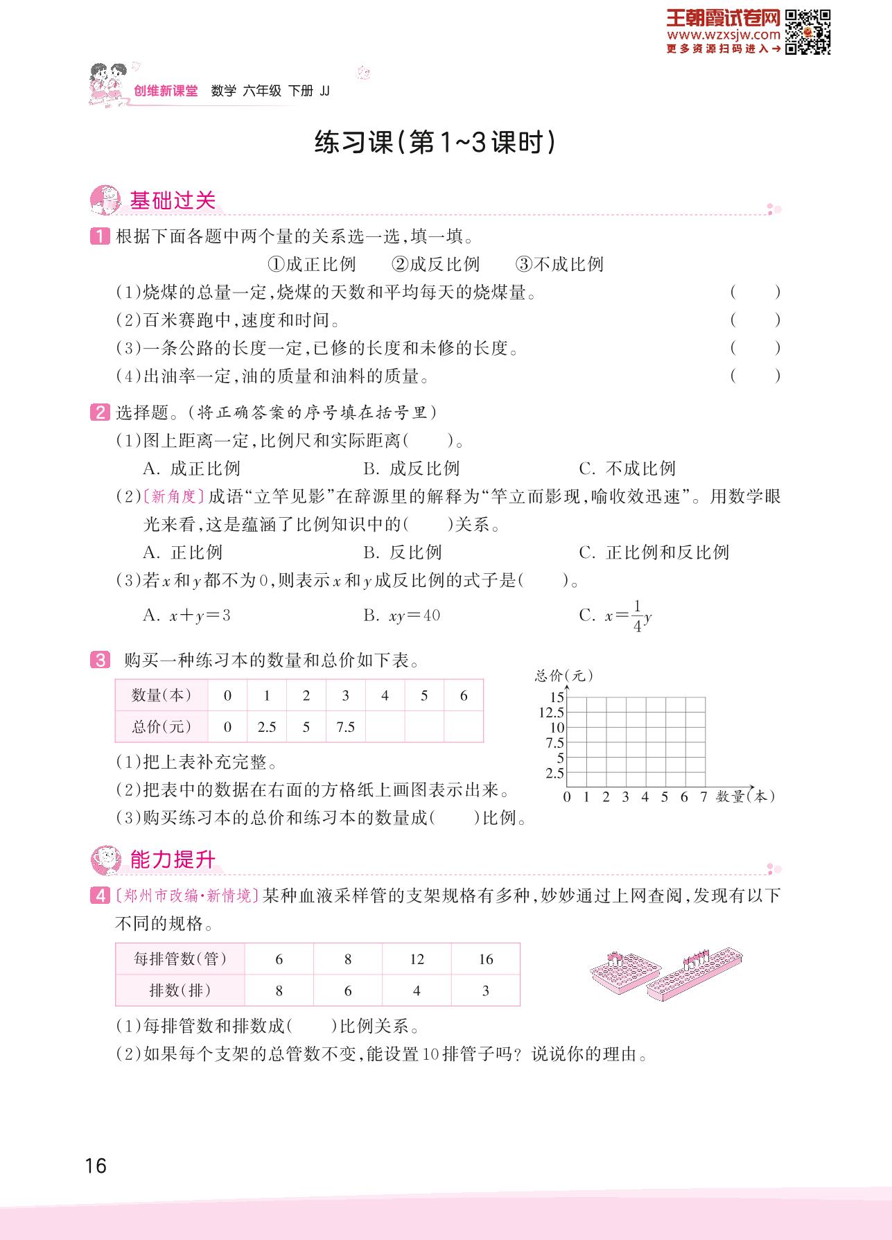 2023下册六年级数学冀教版 三 正比例 反比例——练习课(第1~3课时)
