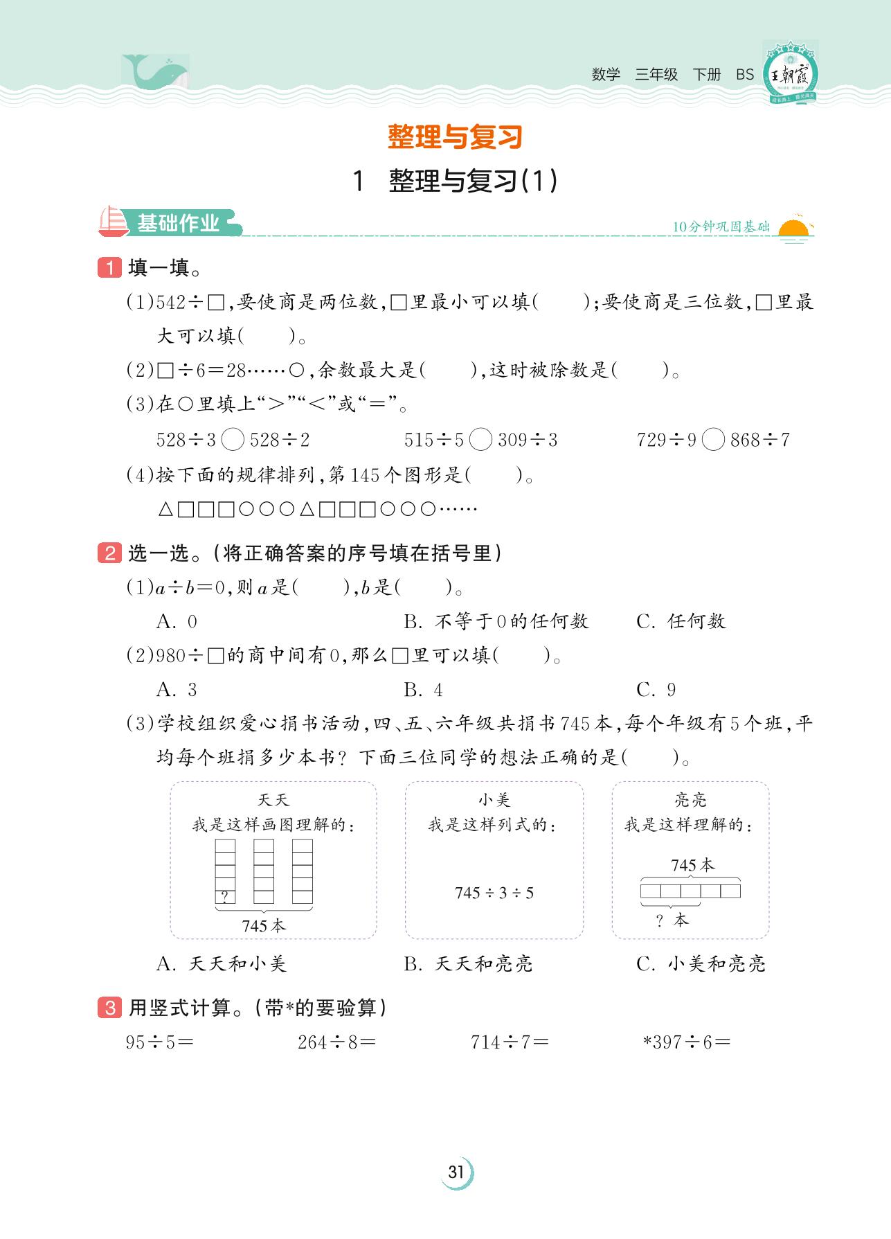 2023下册三年级数学北师版 整理与复习——1 整理与复习(1)