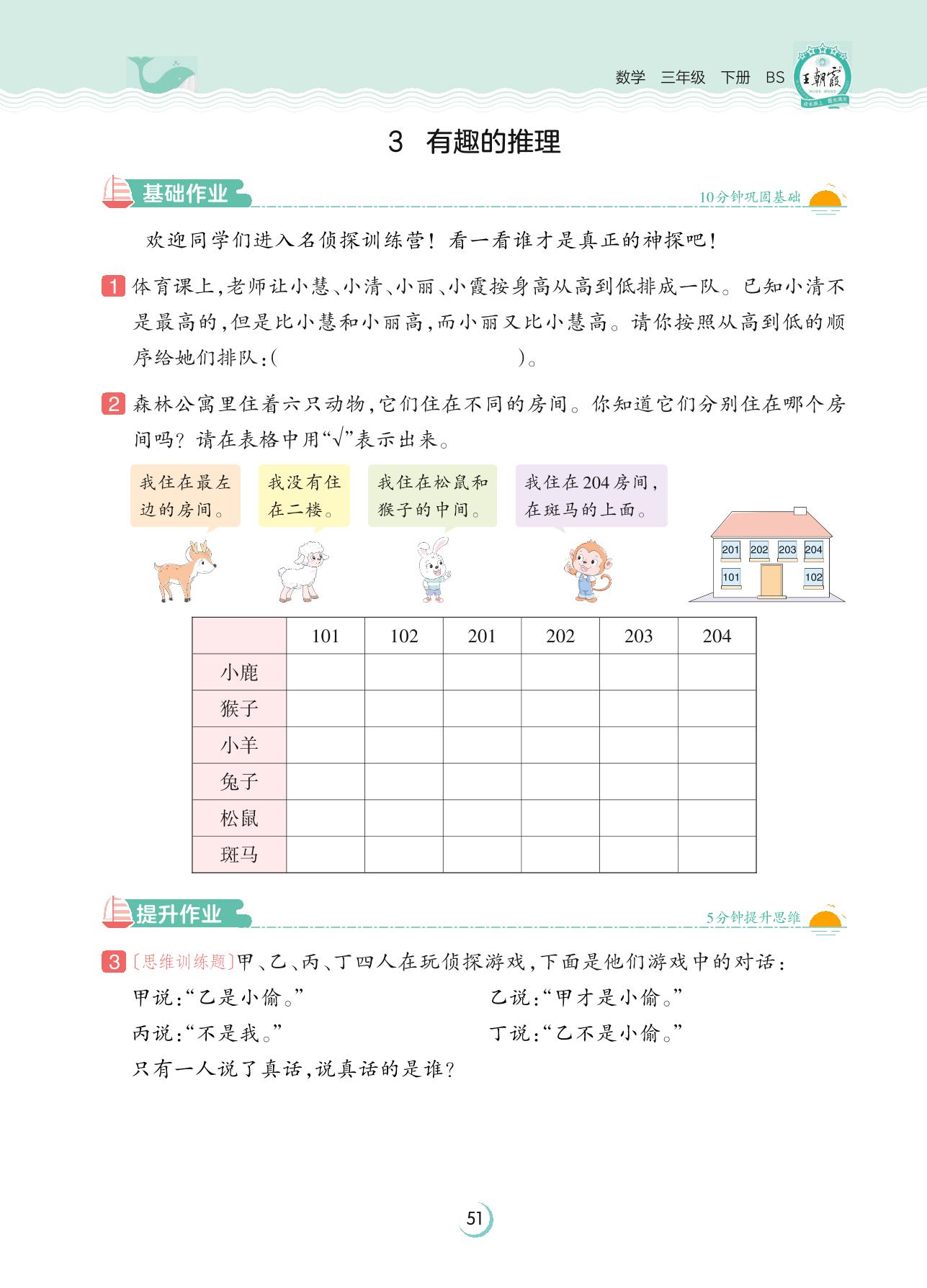 2023下册三年级数学北师版 数学好玩——3 有趣的推理