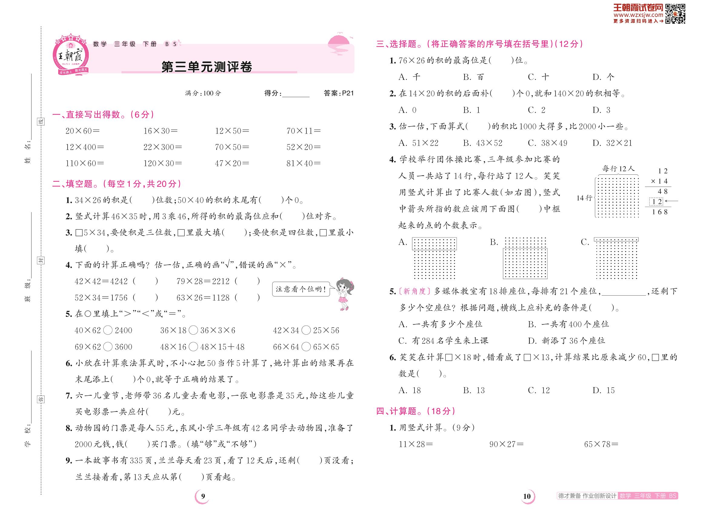 2023下册三年级数学北师版 第三单元测评卷