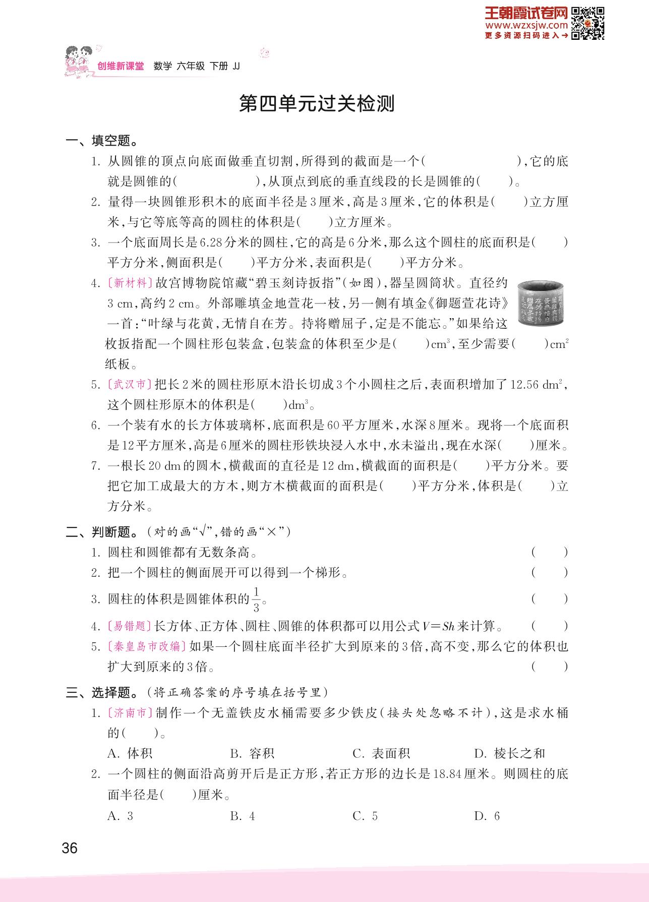 六年级数学冀教版下册单元卷