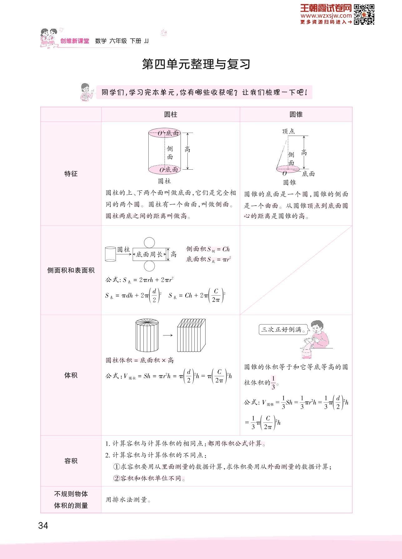 2023下册六年级数学冀教版 第四单元整理与复习
