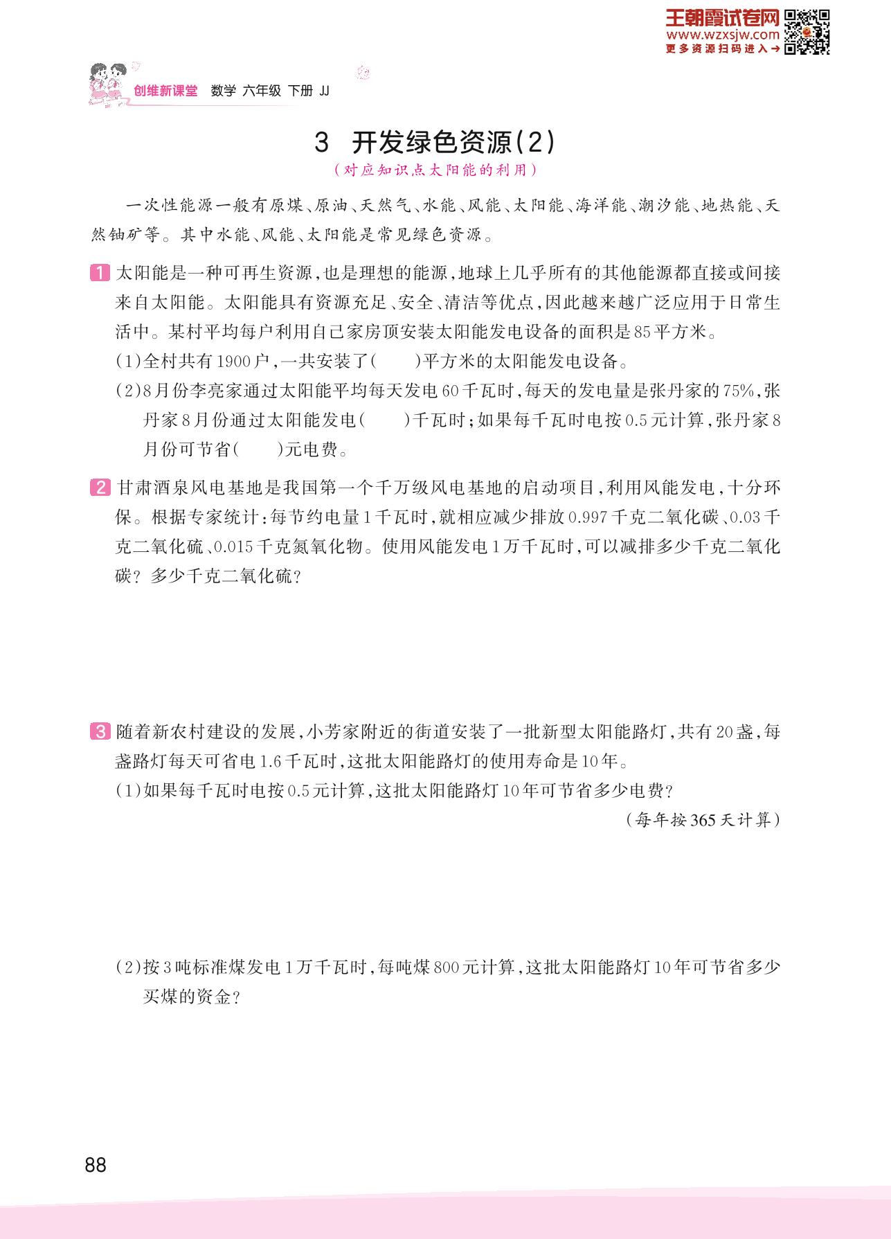 2023下册六年级数学冀教版 六 回顾与整理——3 开发绿色资源(2)
