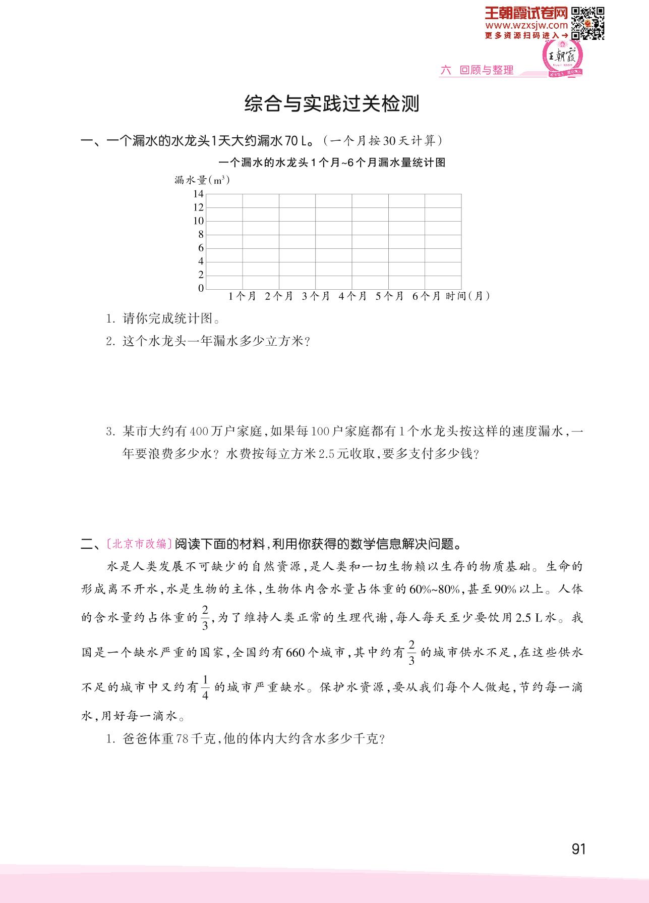 2023下册六年级数学冀教版 六 回顾与整理——综合与实践过关检测