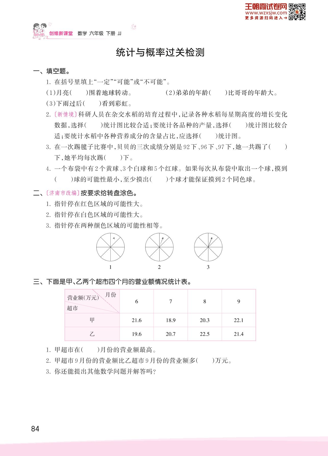 2023下册六年级数学冀教版 六 回顾与整理——统计与概率过关检测