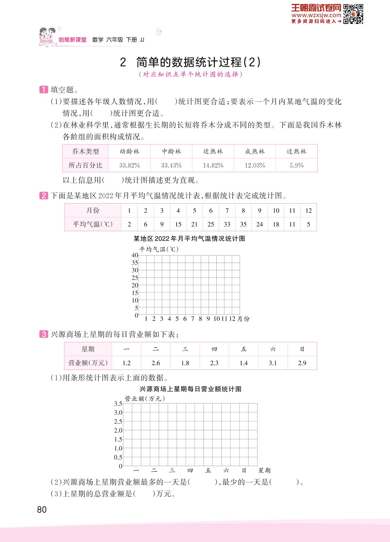 2023下册六年级数学冀教版 六 回顾与整理——2 简单的数据统计过程(2)