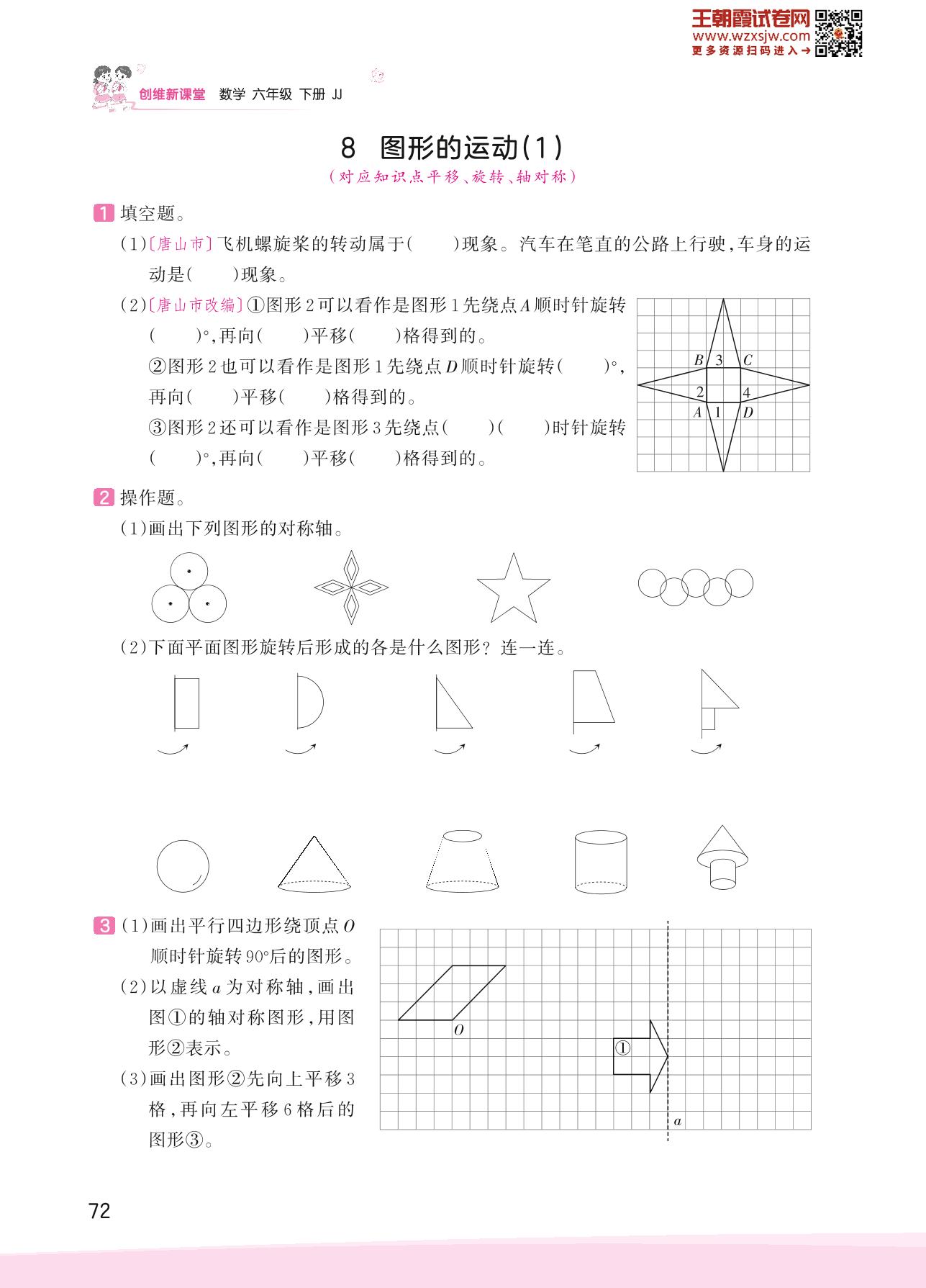 2023下册六年级数学冀教版 六 回顾与整理——8 图形的运动(1)