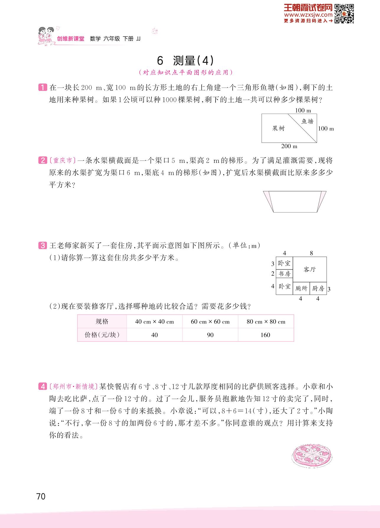 2023下册六年级数学冀教版 六 回顾与整理——6 测量(4)