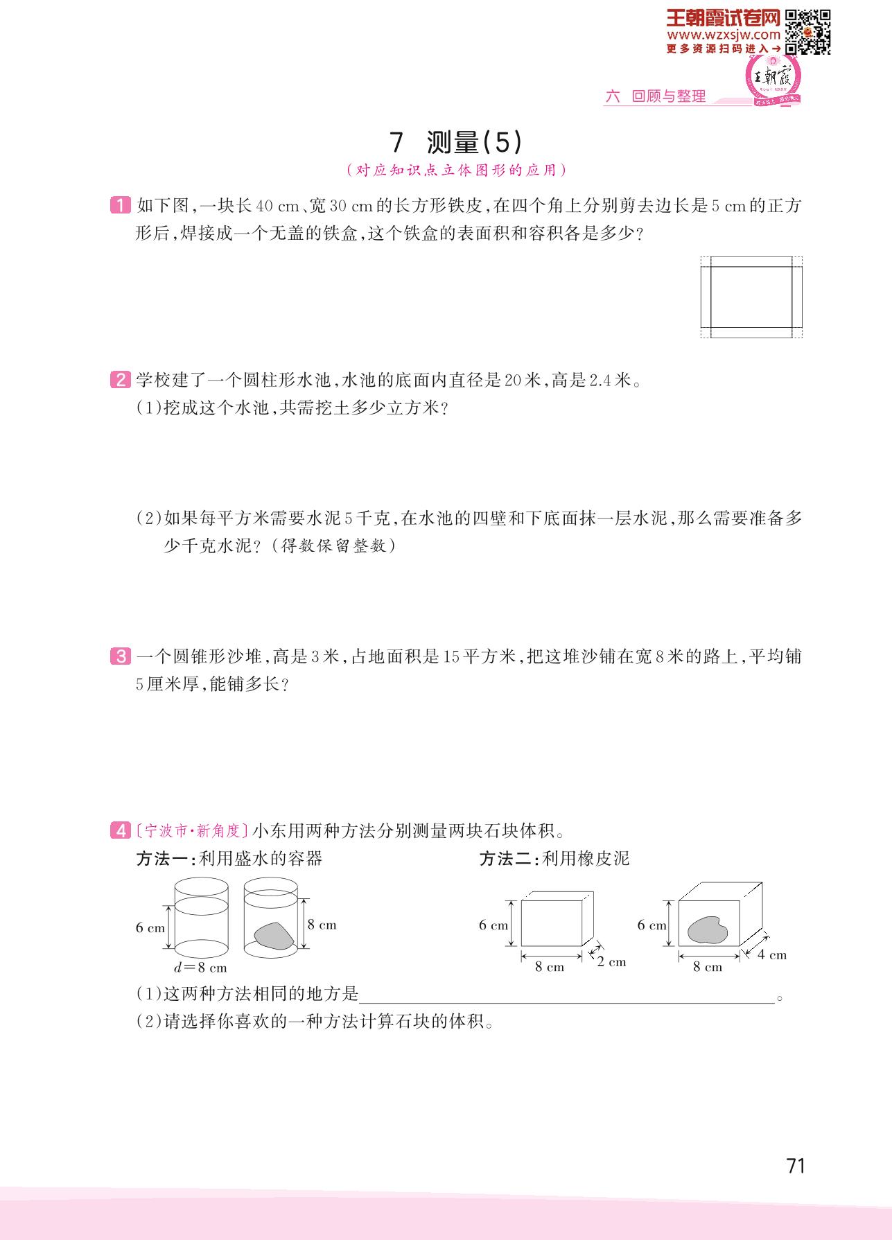 2023下册六年级数学冀教版 六 回顾与整理——7 测量(5)
