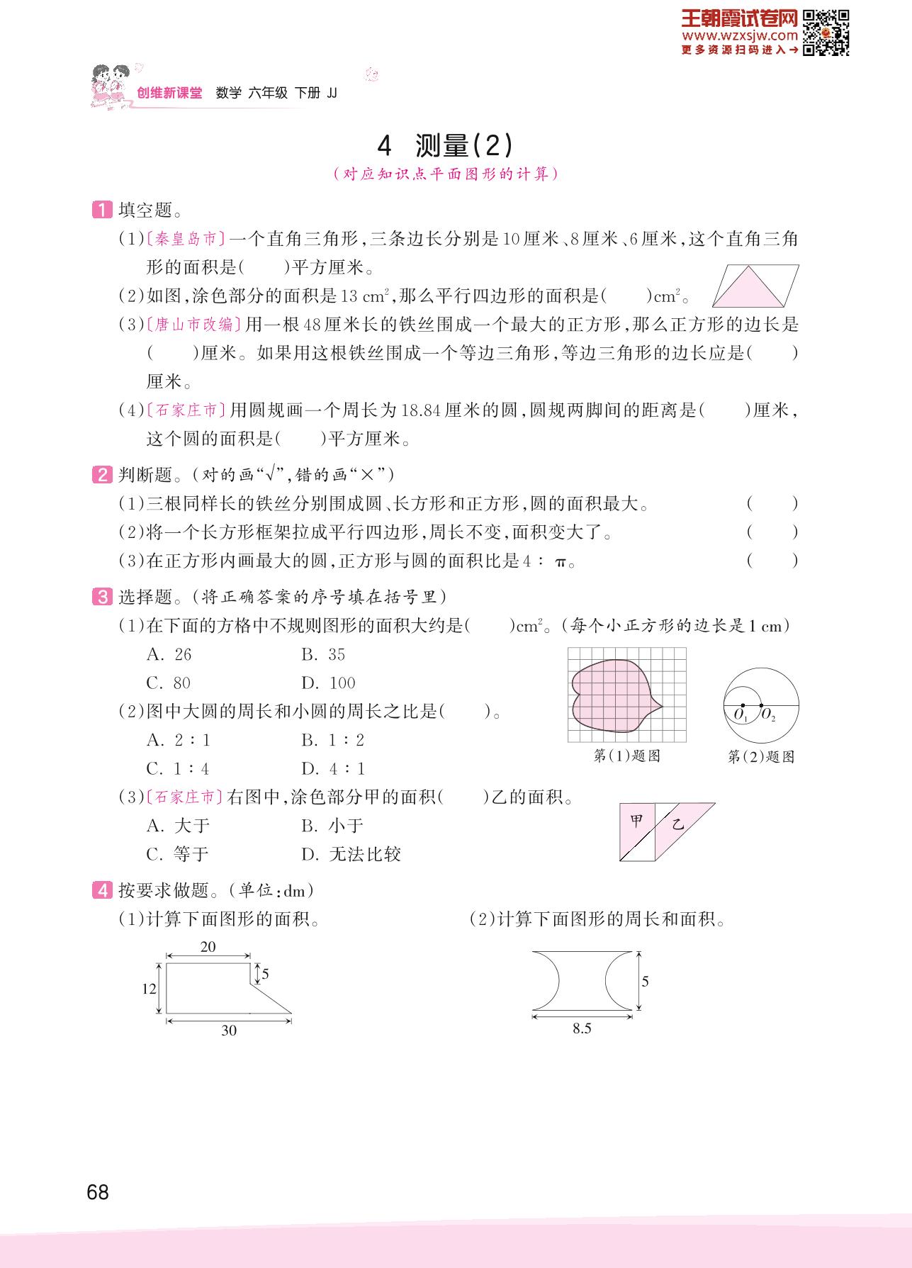 2023下册六年级数学冀教版 六 回顾与整理——4 测量(2)