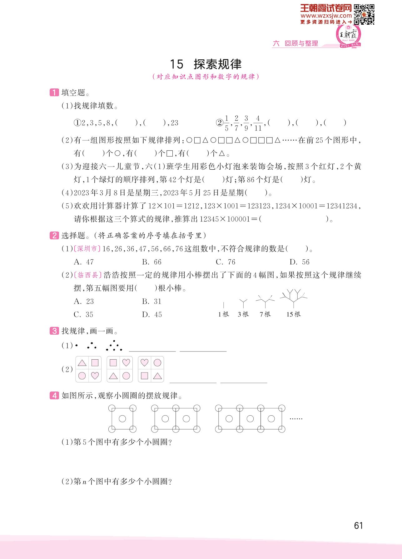 2023下册六年级数学冀教版 六 回顾与整理——15 探索规律