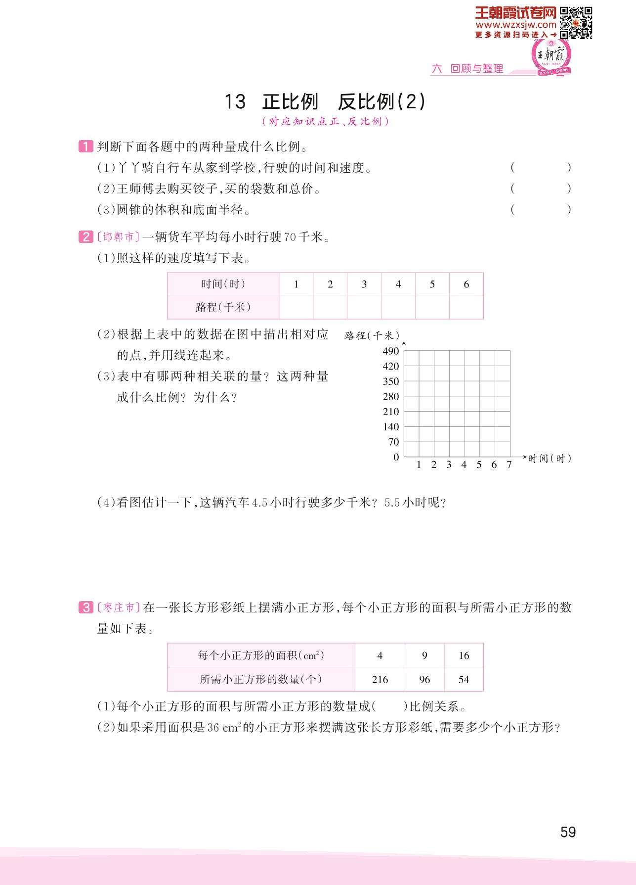 2023下册六年级数学冀教版 六 回顾与整理——13 正比例 反比例(2)