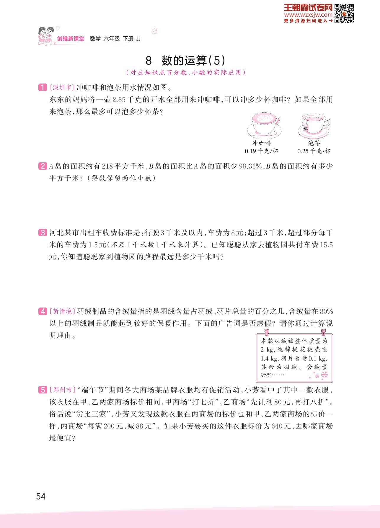 2023下册六年级数学冀教版 六 回顾与整理——8 数的运算(5)