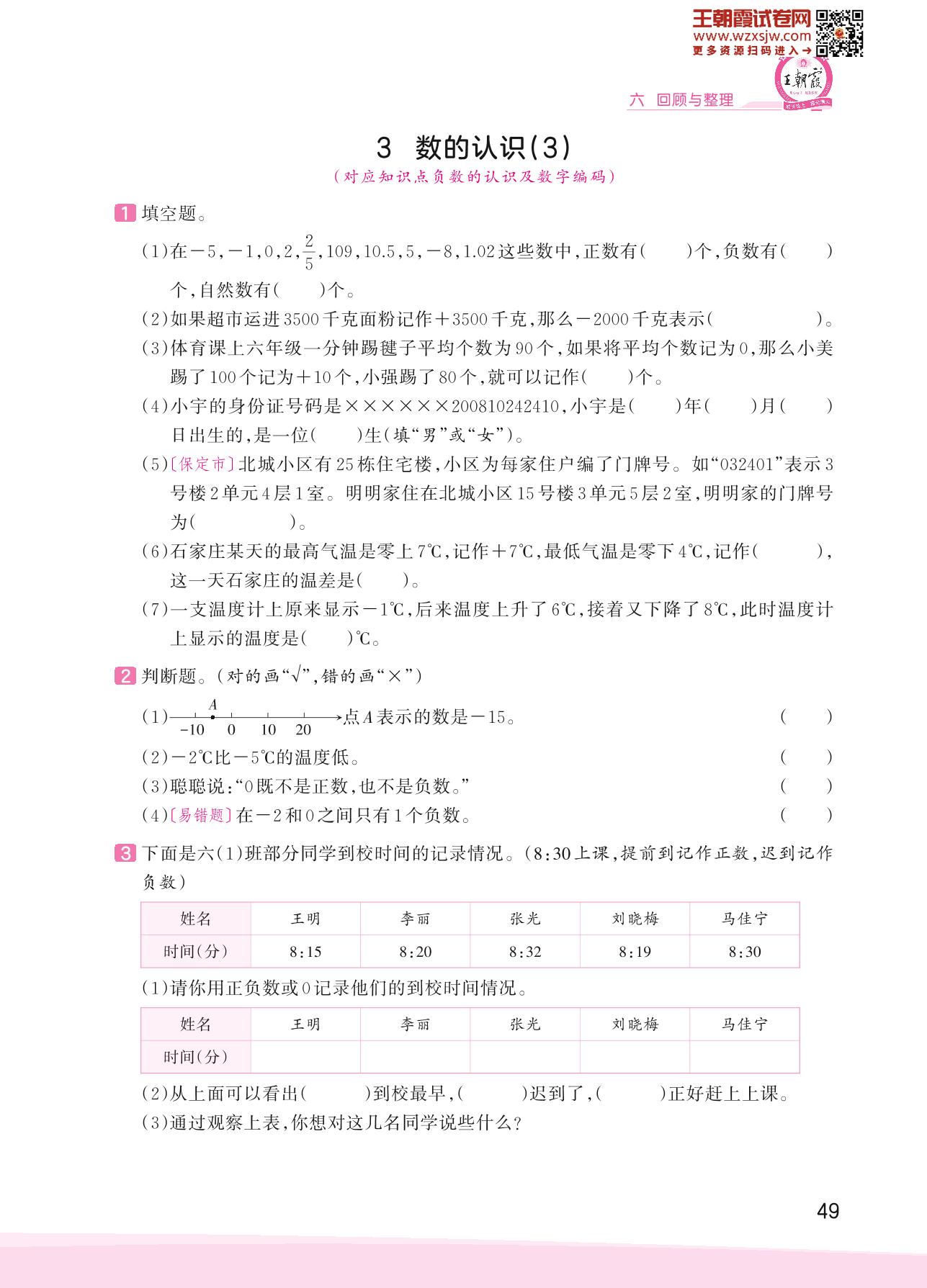 2023下册六年级数学冀教版 六 回顾与整理——3 数的认识(3)