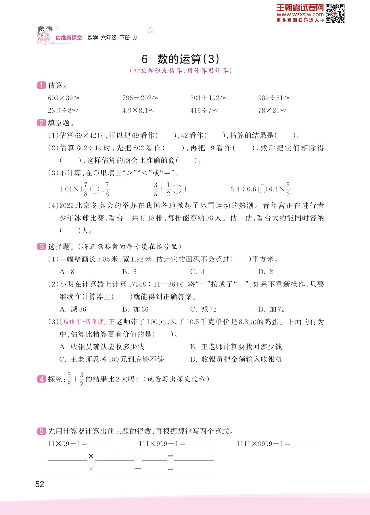 2023下册六年级数学冀教版 六 回顾与整理——6 数的运算(3)