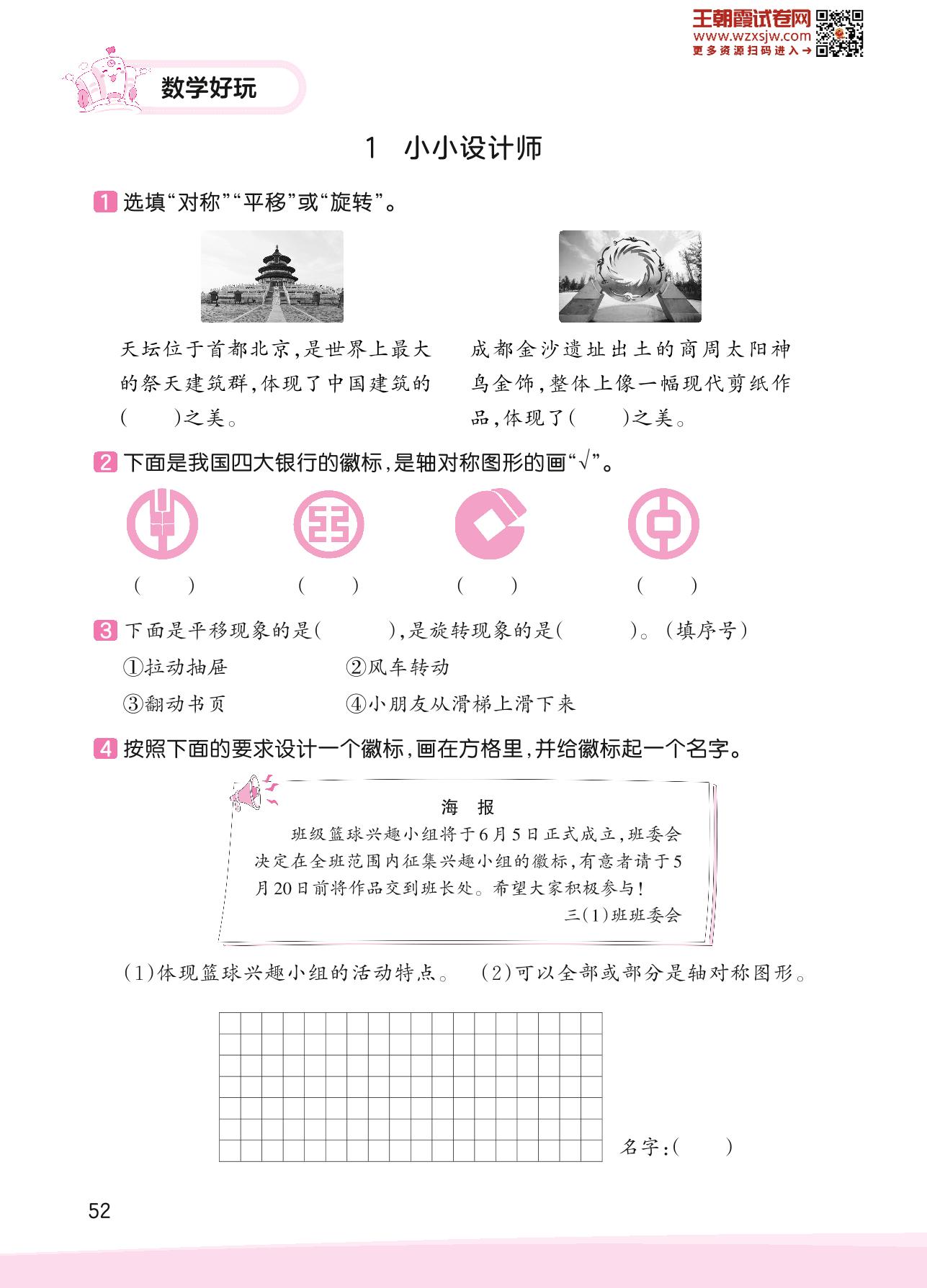 2023下册三年级数学北师版 数学好玩——1 小小设计师