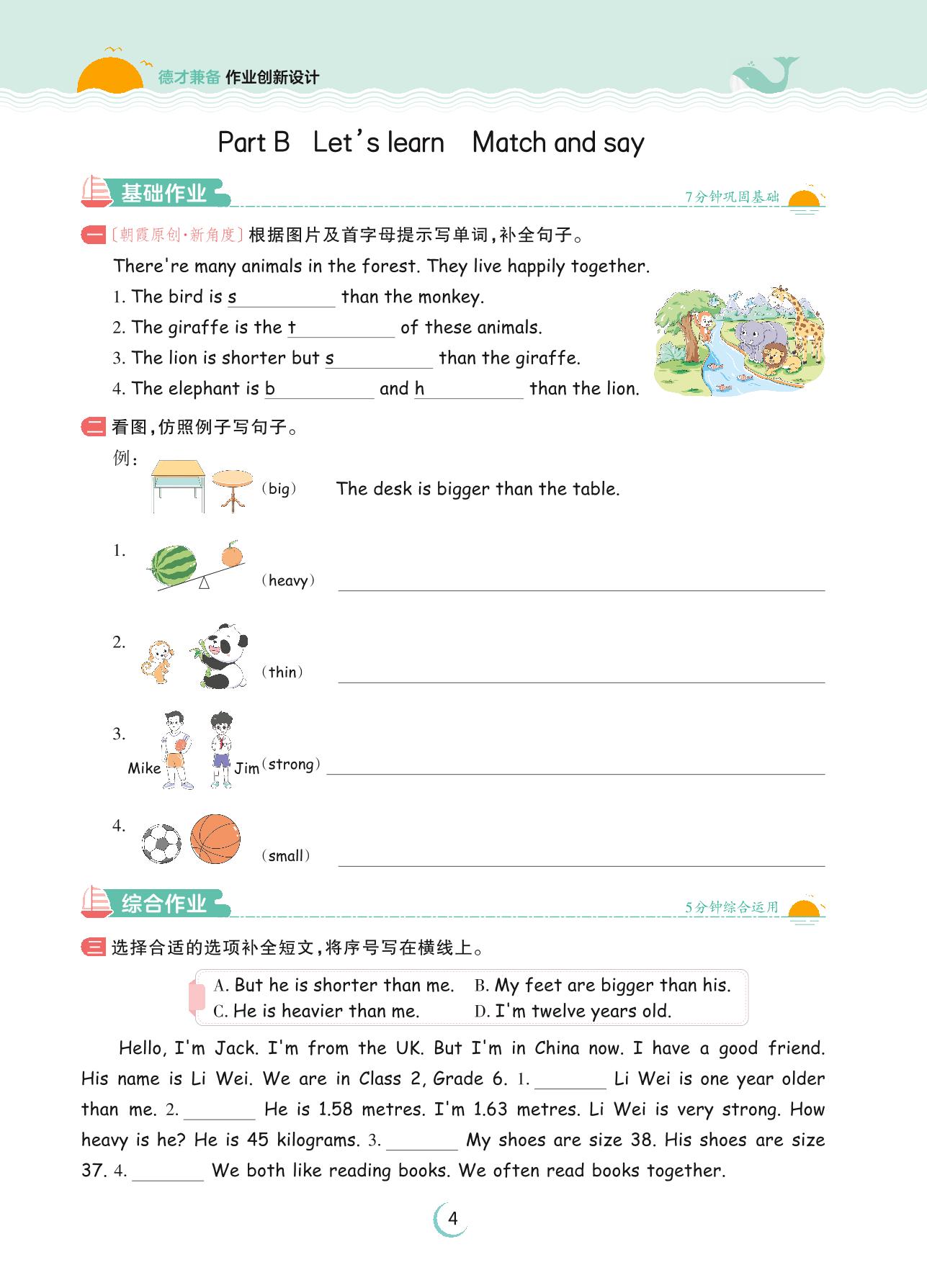 2023下册六年级英语人教PEP版 Unit 1 Part B—Let’s learn Match and say