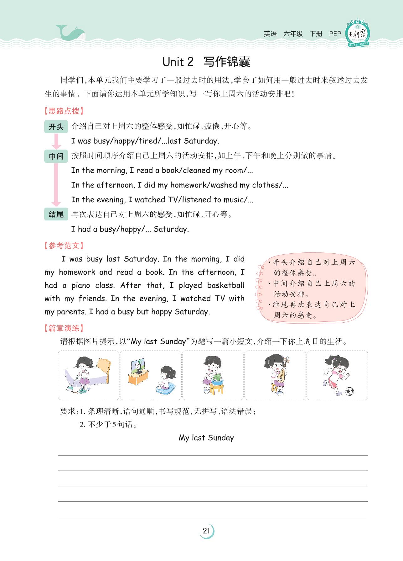 2023下册六年级英语人教PEP版 Unit 2 写作锦囊