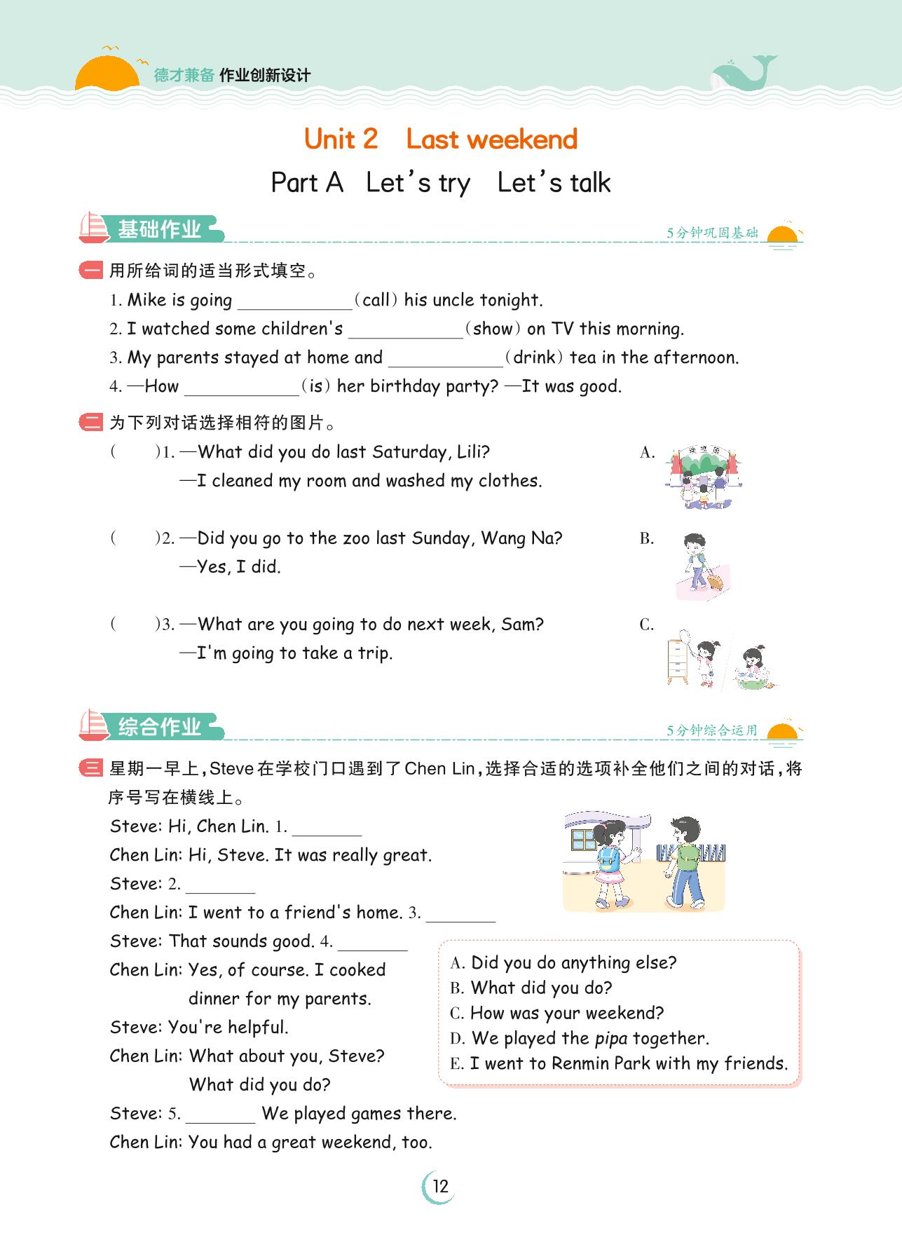 2023下册六年级英语人教PEP版 Unit 2 Part A—Let’s try Let’s talk